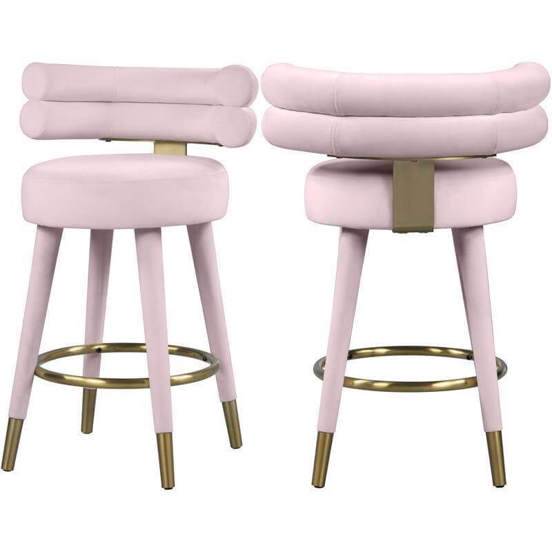 • Parisian Grey Velvet Brass Counter Stool