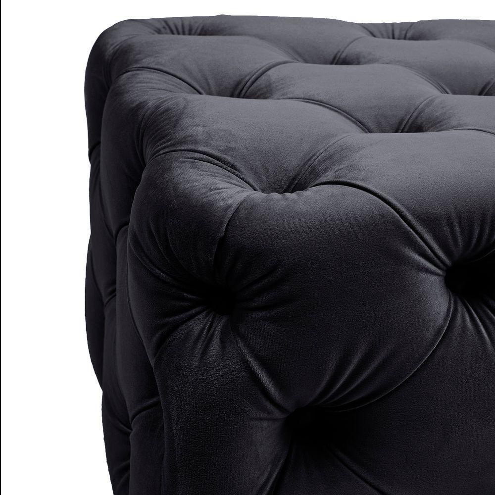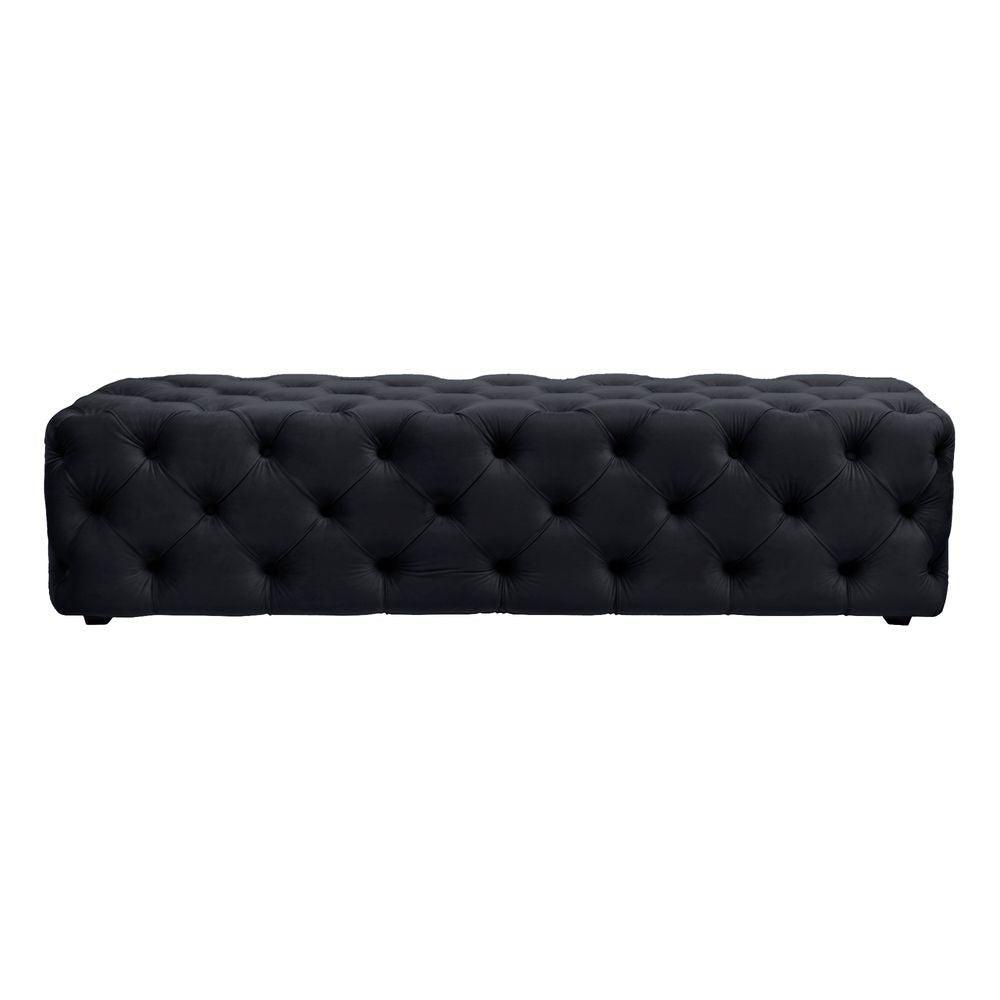 Park Avenue Black velvet upholstered bench ottoman with detailed tufted buttons.