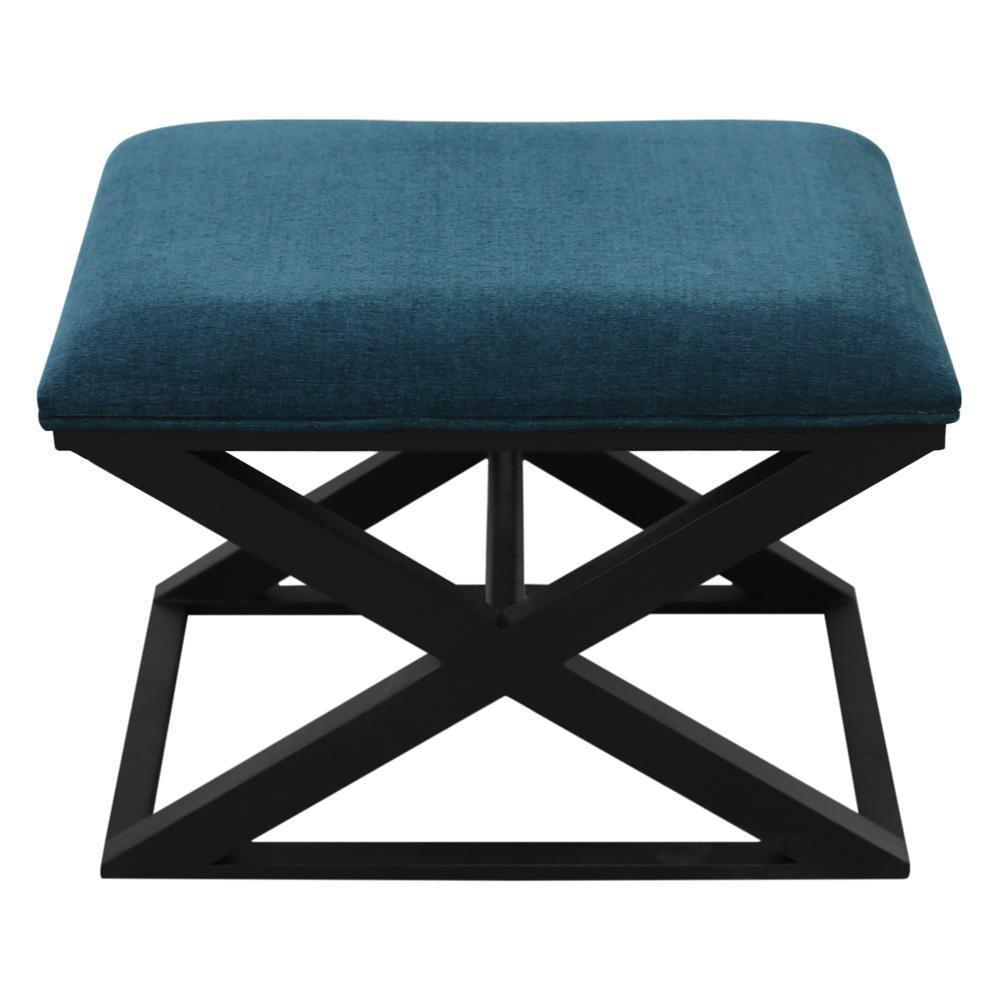 Parlour Blue Linen Black Ottoman Stool