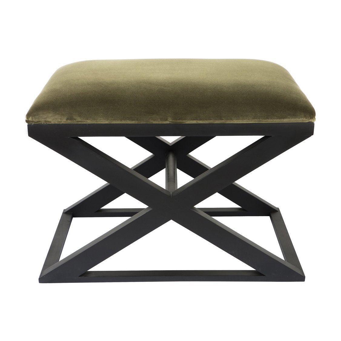 Natural linen upholstered cross leg stool, made of natural black timber legs with self piping.