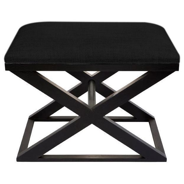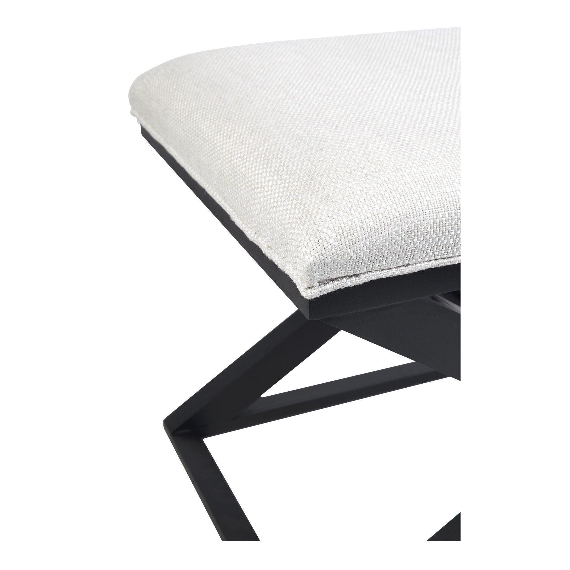 Natural linen upholstered cross leg stool, made of natural black timber legs with self piping.