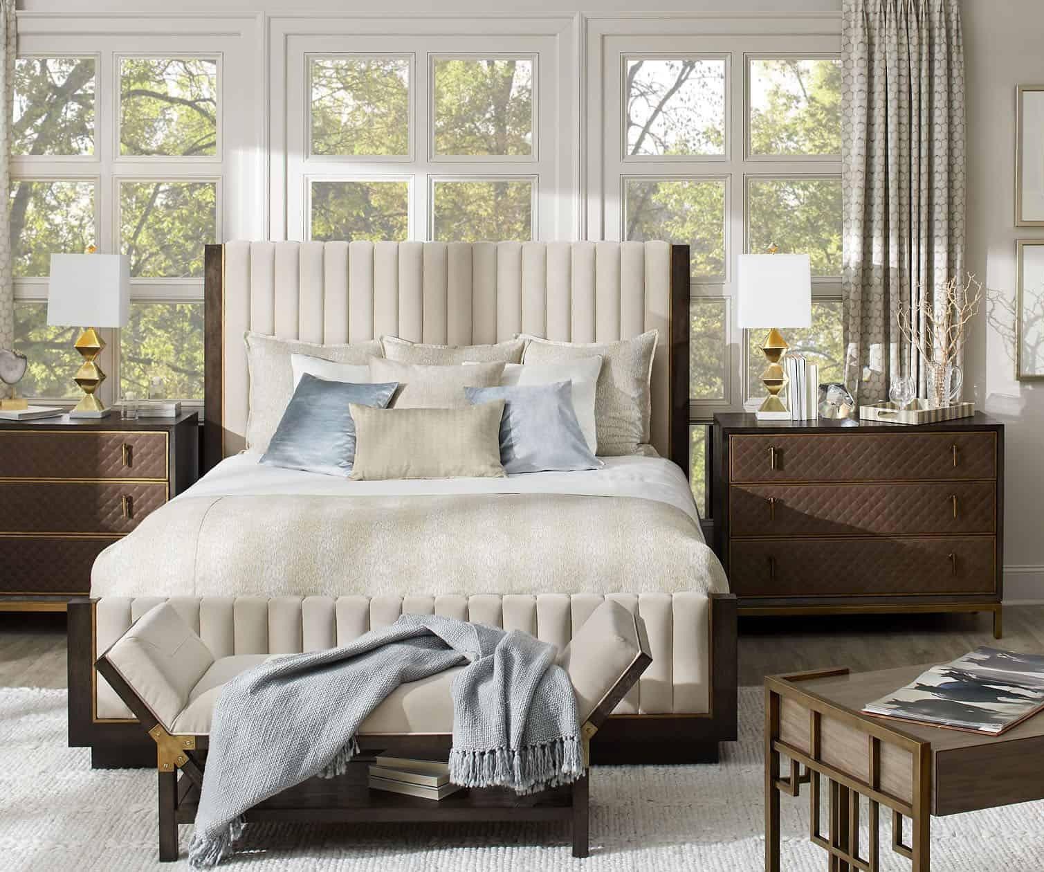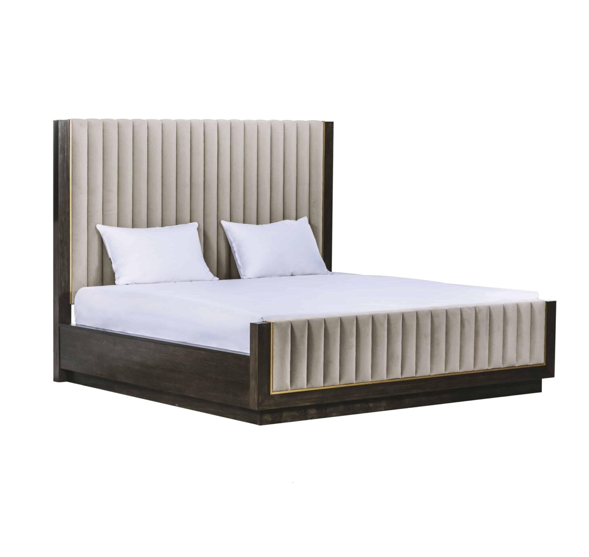 The soft beige tones intertwine with linear oak characteristics to create a unique balance to the rest of the collection. Broad use of materials from wood, brass metal and luxurious velvet fabric are hand-selected for each and every item for a balance in shape, tone and refinement.