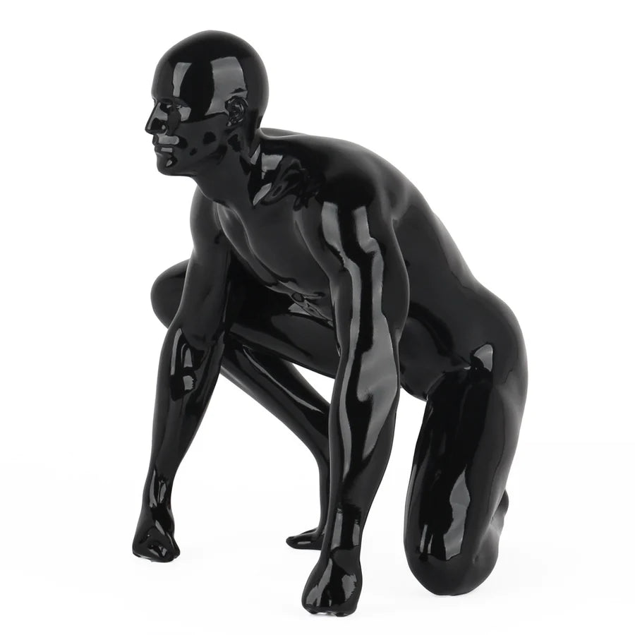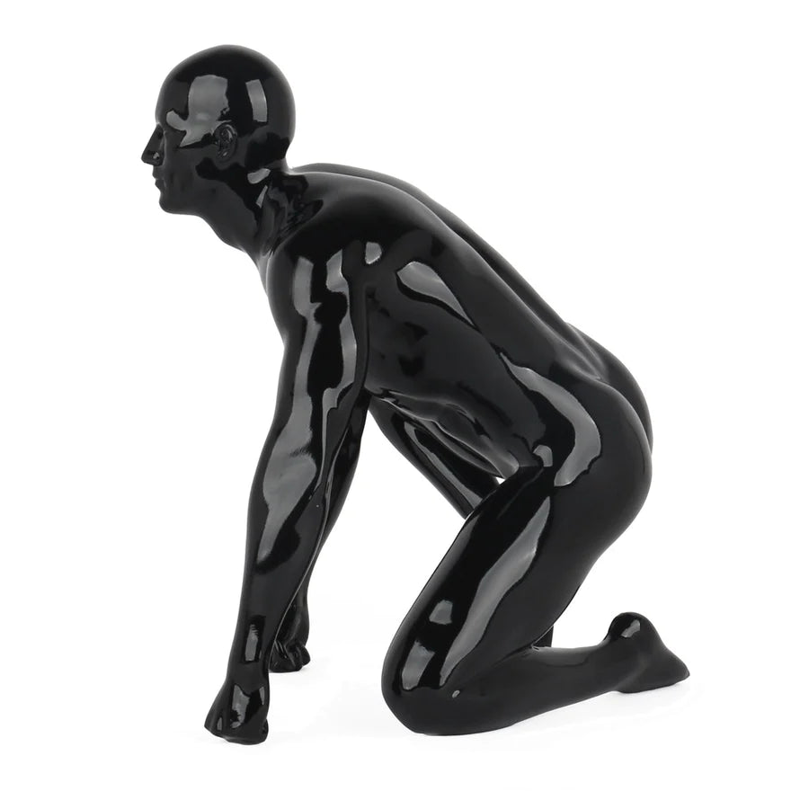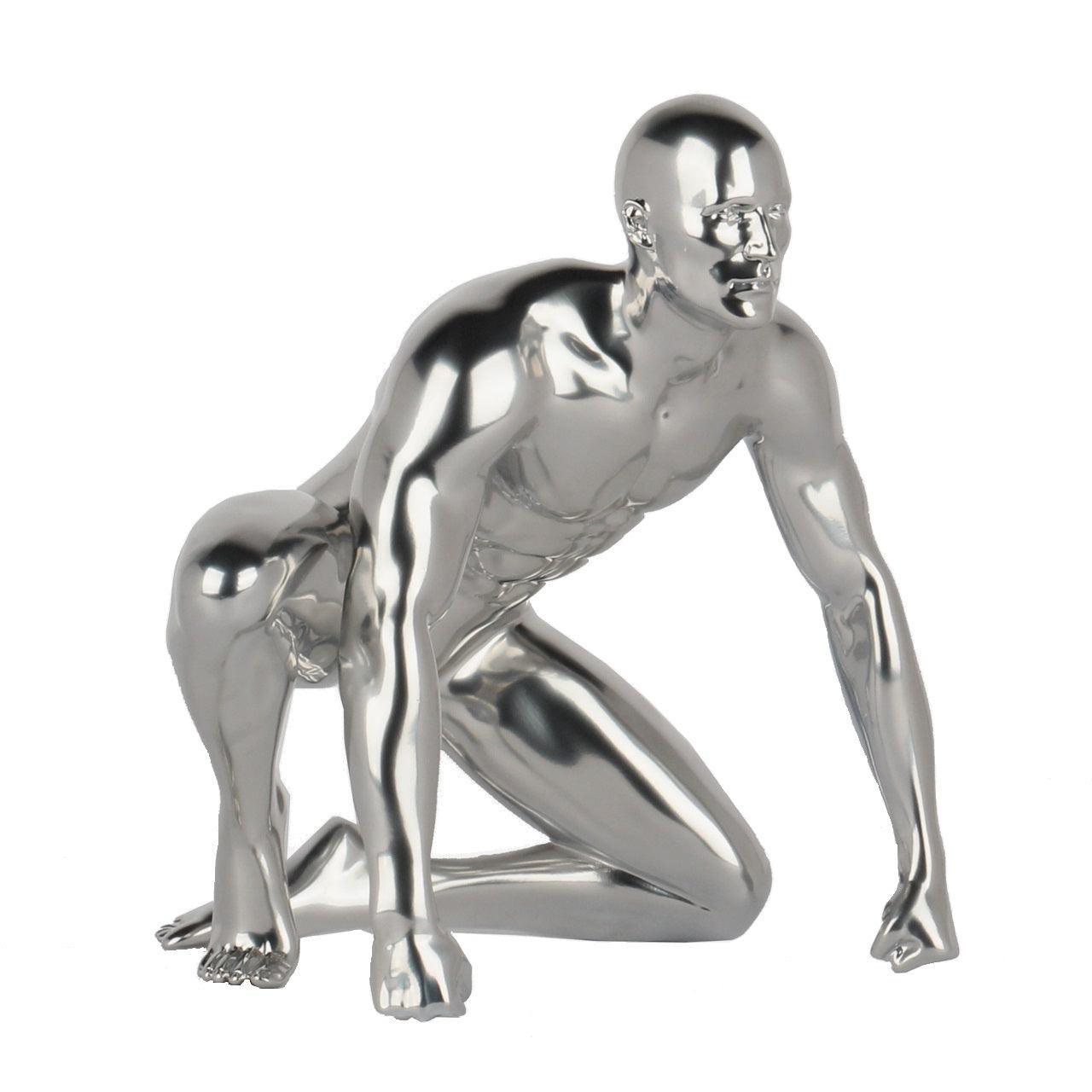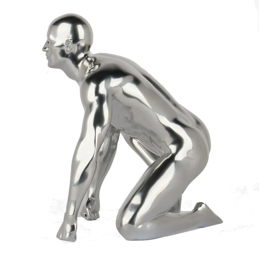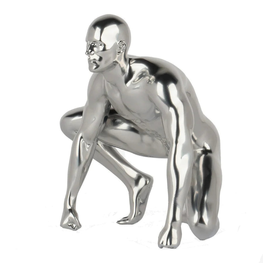 Redemption – male athlete gymnast sculpture. The figurine is made from resin and finished in metallic look silver mirror finish. Each piece is individually moulded, polished and painted.