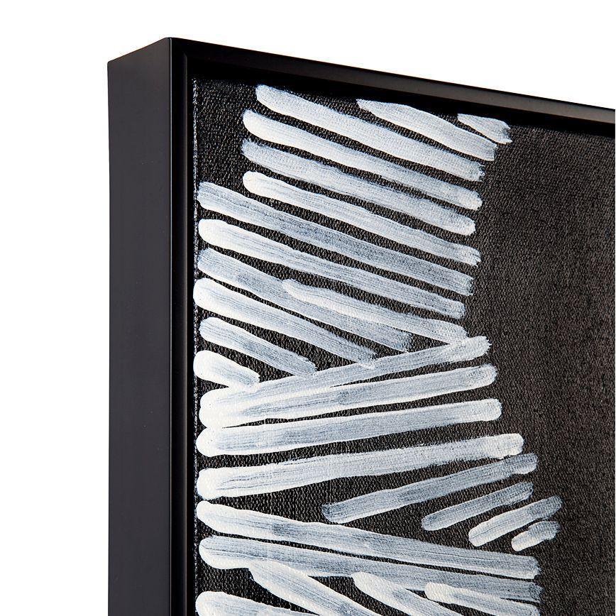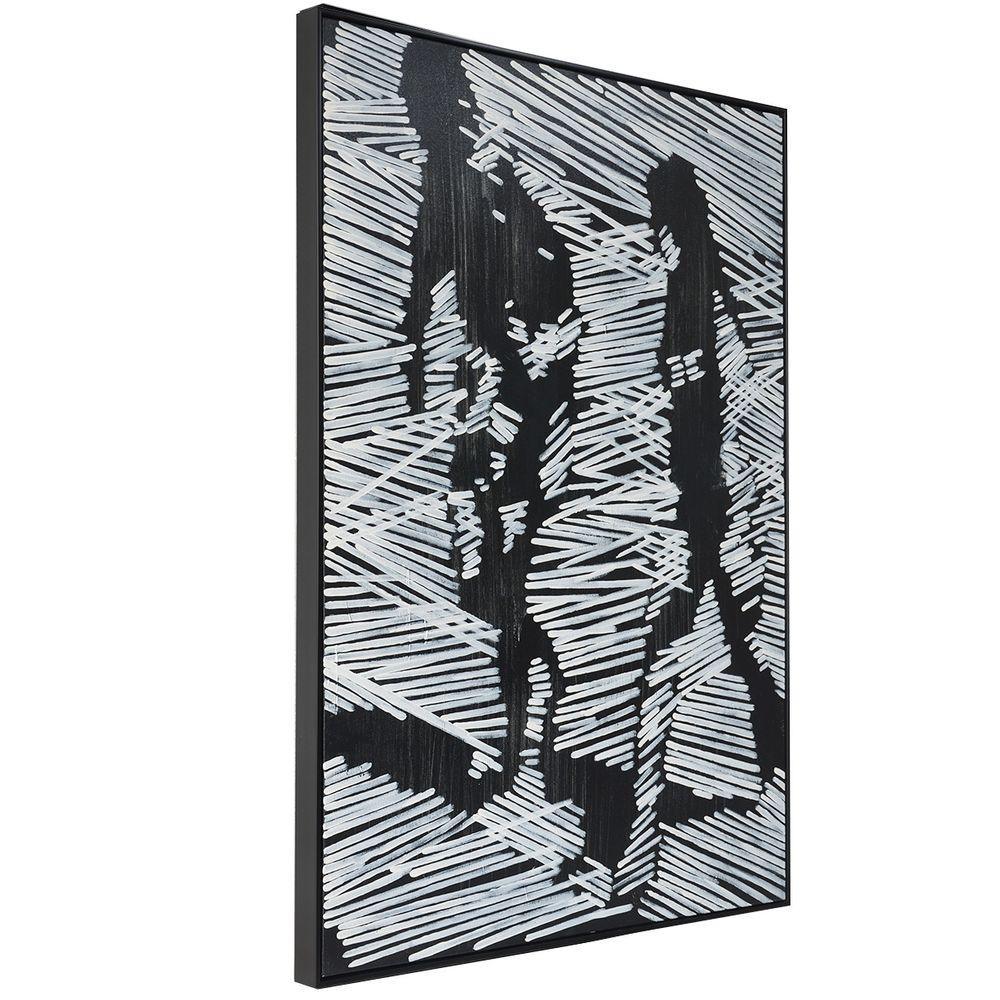 Silhouette of a couple walking in dramatic black & white monochromatic hand painted oil painting. Suits most interior décor styles from contemporary to modern classic. Individually hand painted by artisans on canvas and beautifully displayed in a semi gloss black shadow box frame. Each work of art is unique and individually hand painted by international artists, slight variances may occur in colour and texture.