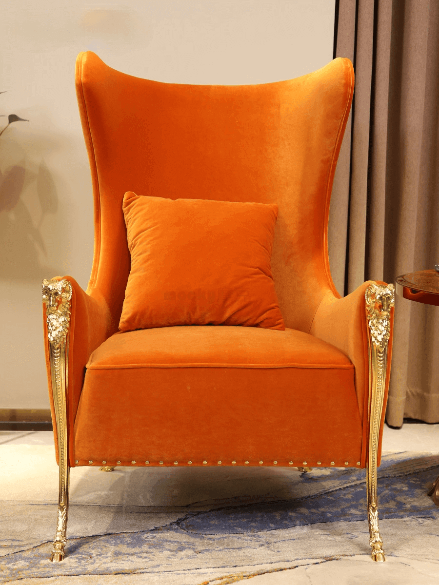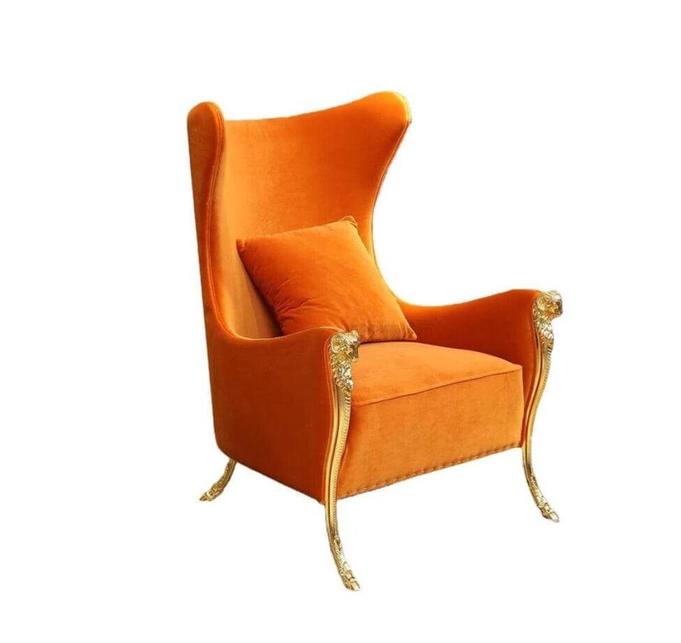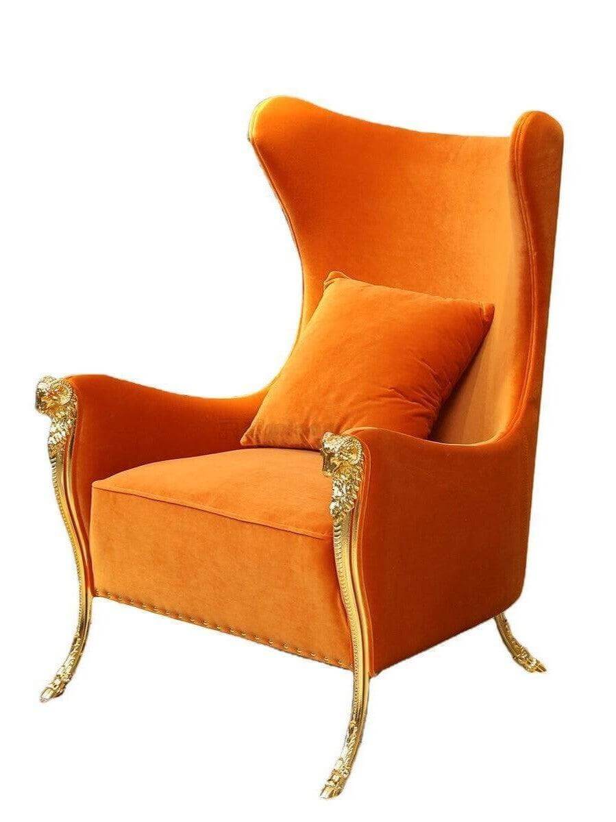 • Regal Orange Velvet Brass Studded Wingchair