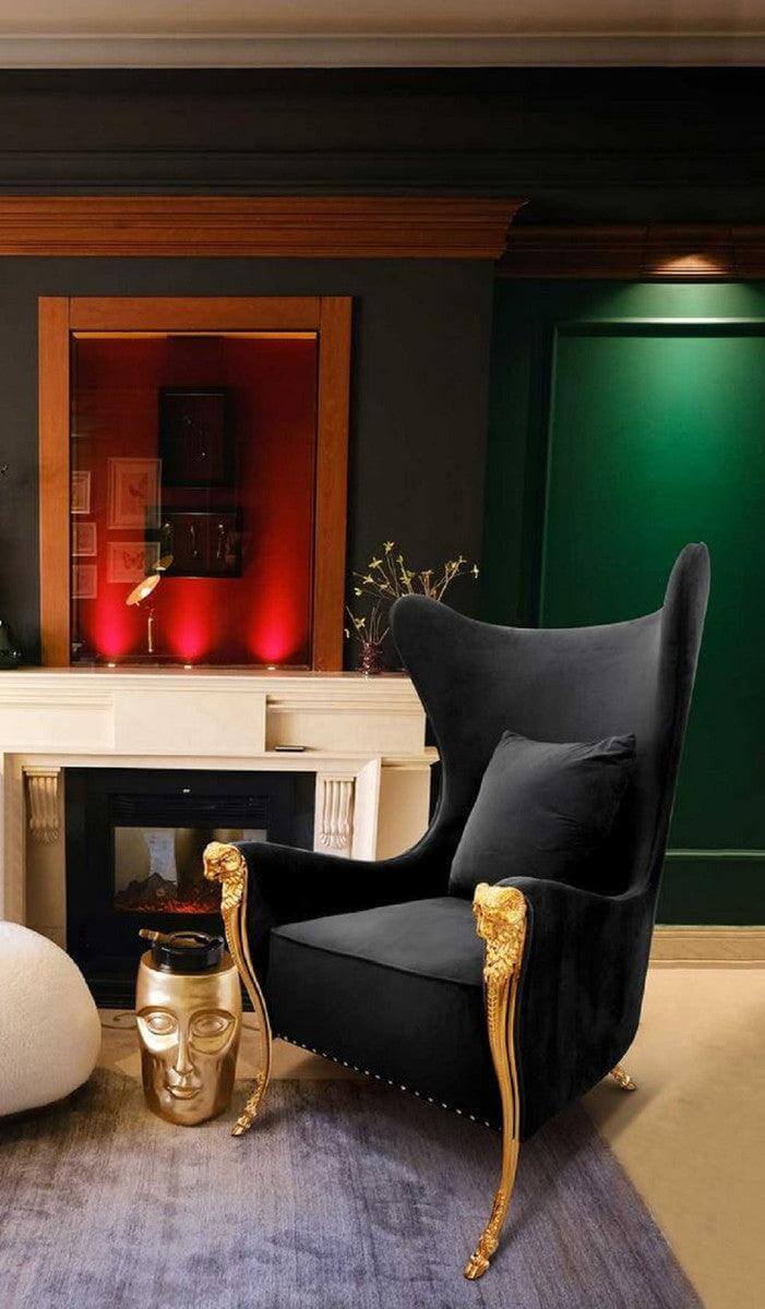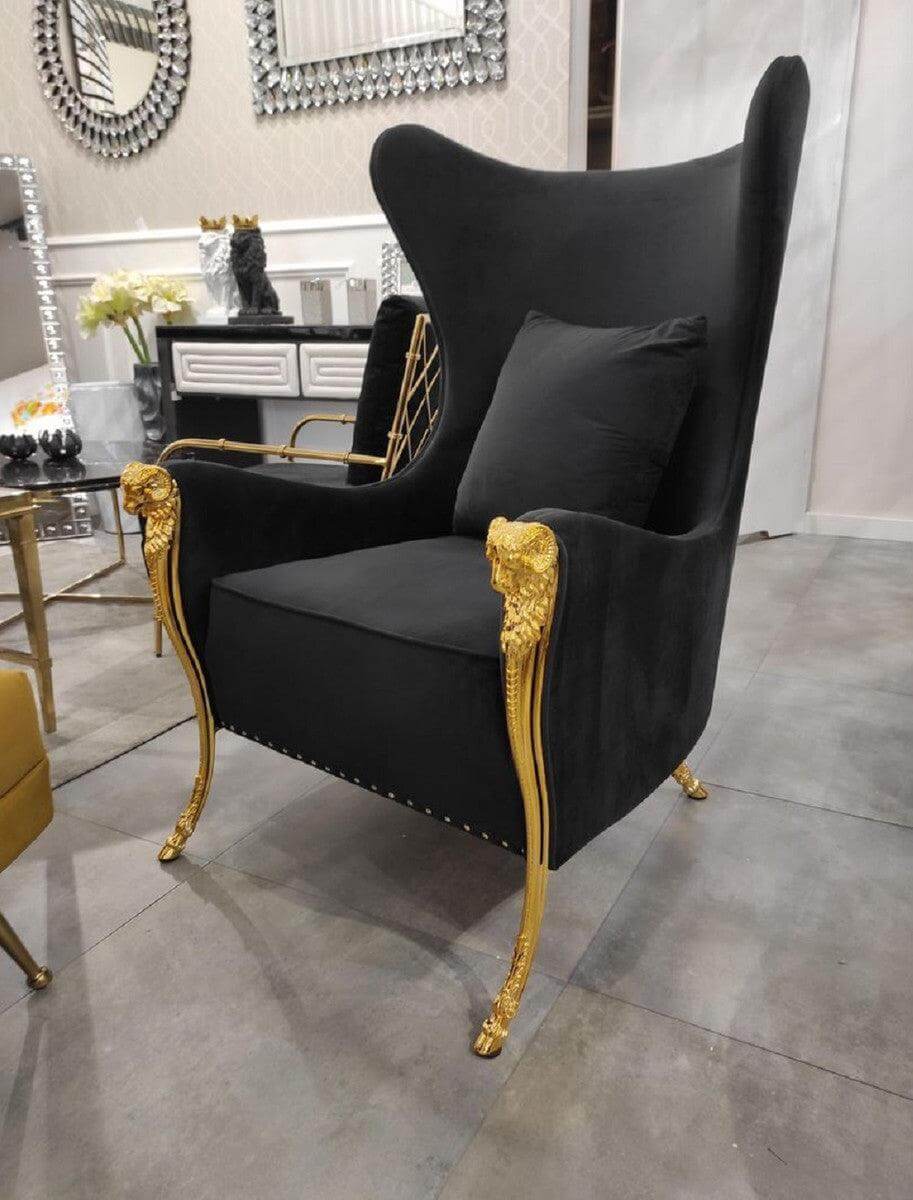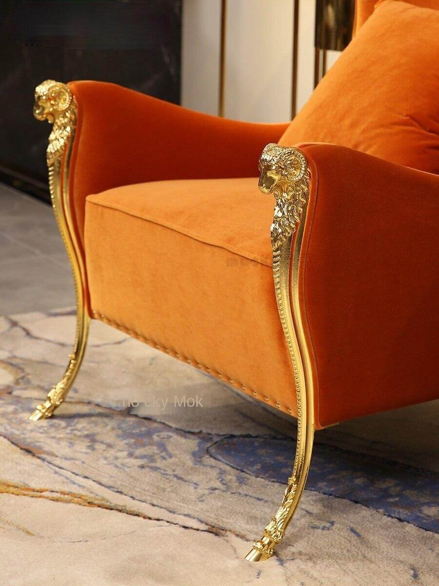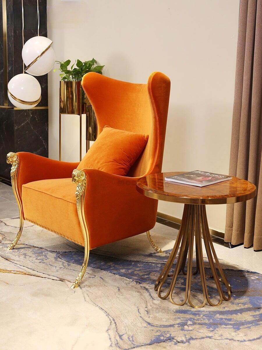 • Regal Orange Velvet Brass Studded Wingchair