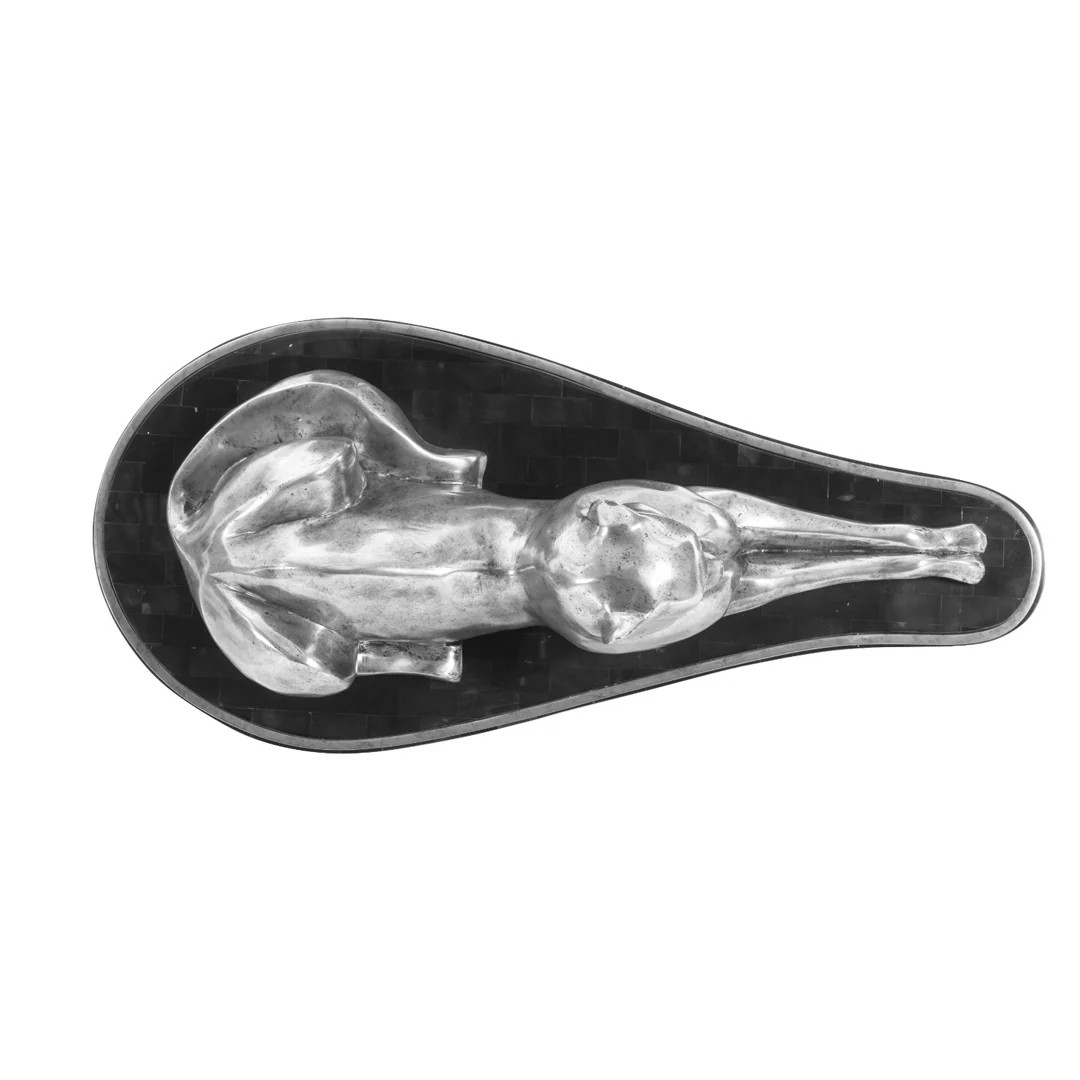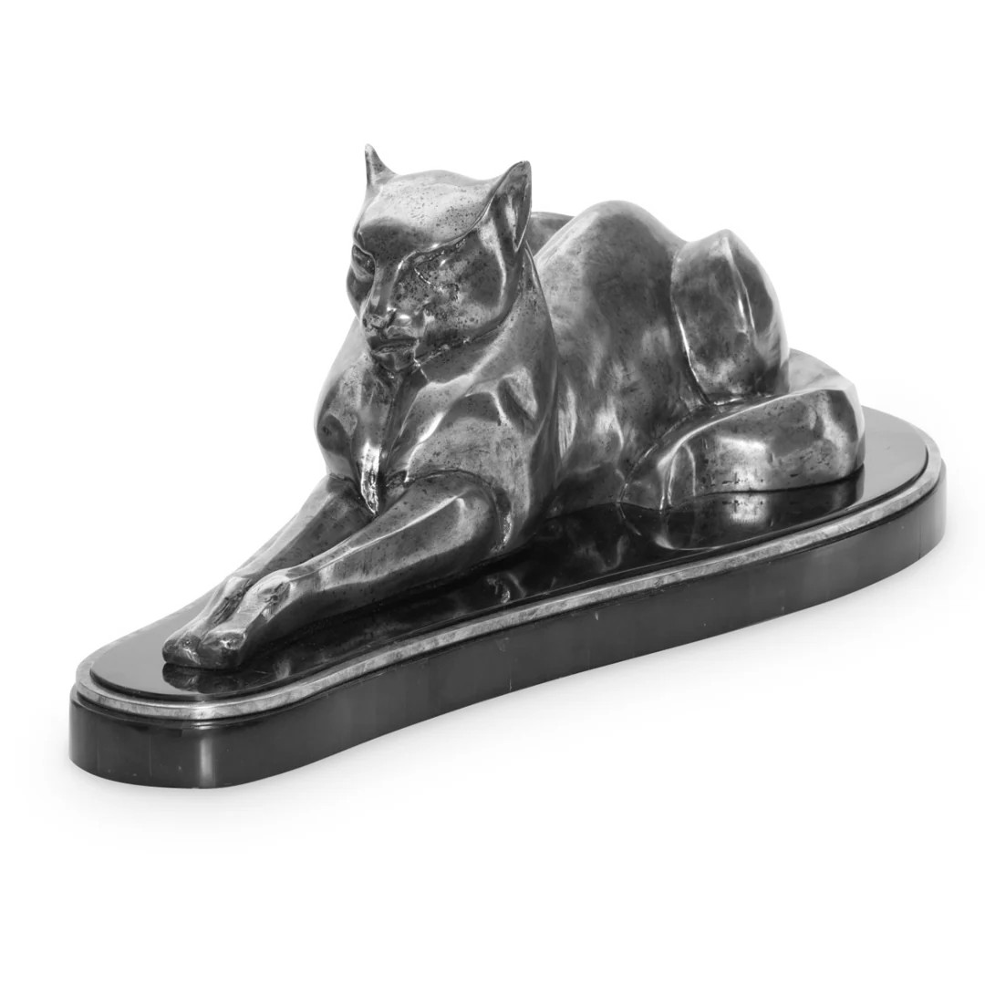 Regal Puma Nickel Marble Sculpture. Solid Nickel sculpture of a Puma on a marble tray with nickel edging.