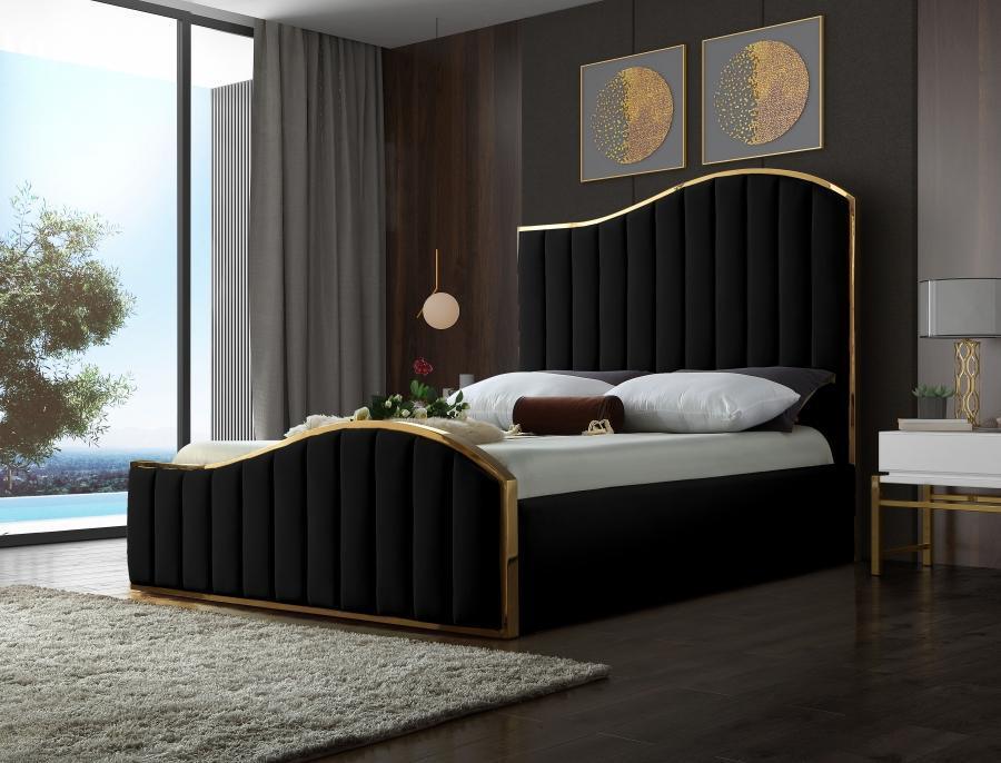 Regency Black Velvet Gold King Bed