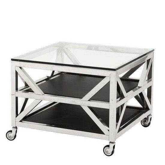 Castor Chrome Glass Black Marble Sidetable