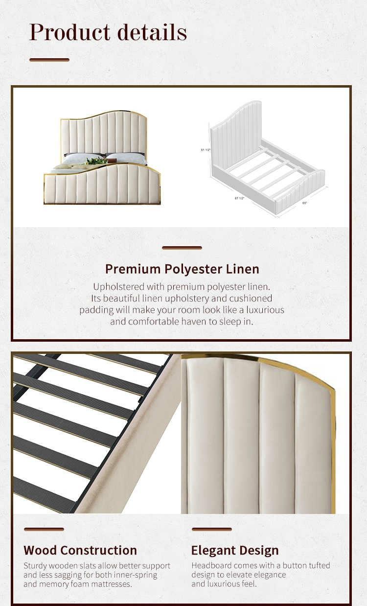 The REGENCY COLLECTION from Avant Garde Furniture is a True Renaissance of Hollywood Regency Design. This luxurious design features Plush oversized channel headboard in beautiful thick plush velvet fabric with deep channel tufted design. Bespoke polished gold metal frame and hardware. This stunning design features luxurious matching Polished Gold “Wave design” Headboard and footboard to embody the Manhattan skyline in beautiful polished gold metal detail.