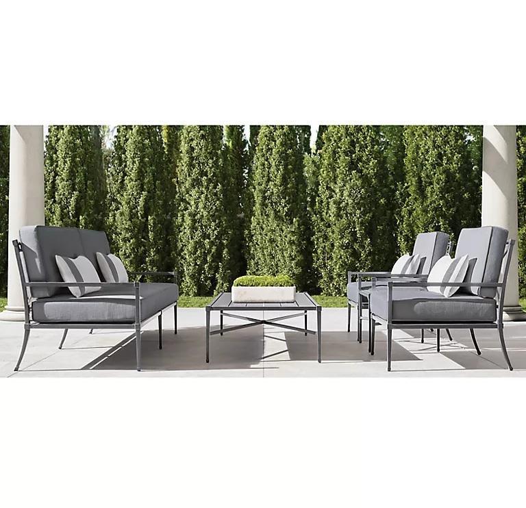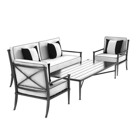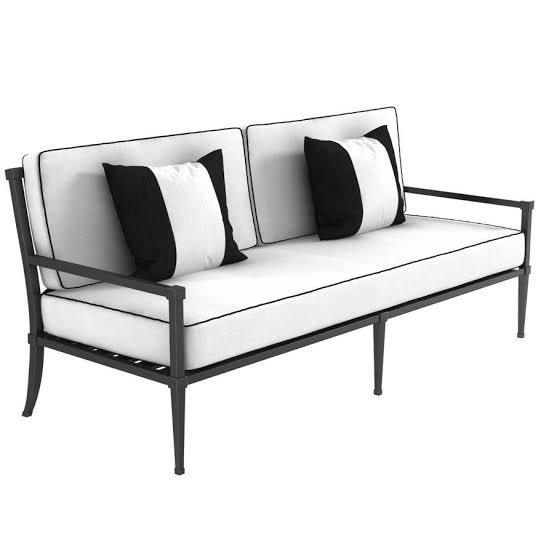 Regency Outdoor Black aluminium water resistant finish Sofa with waterproof white with black piping canvas outdoor waterproof fabric.