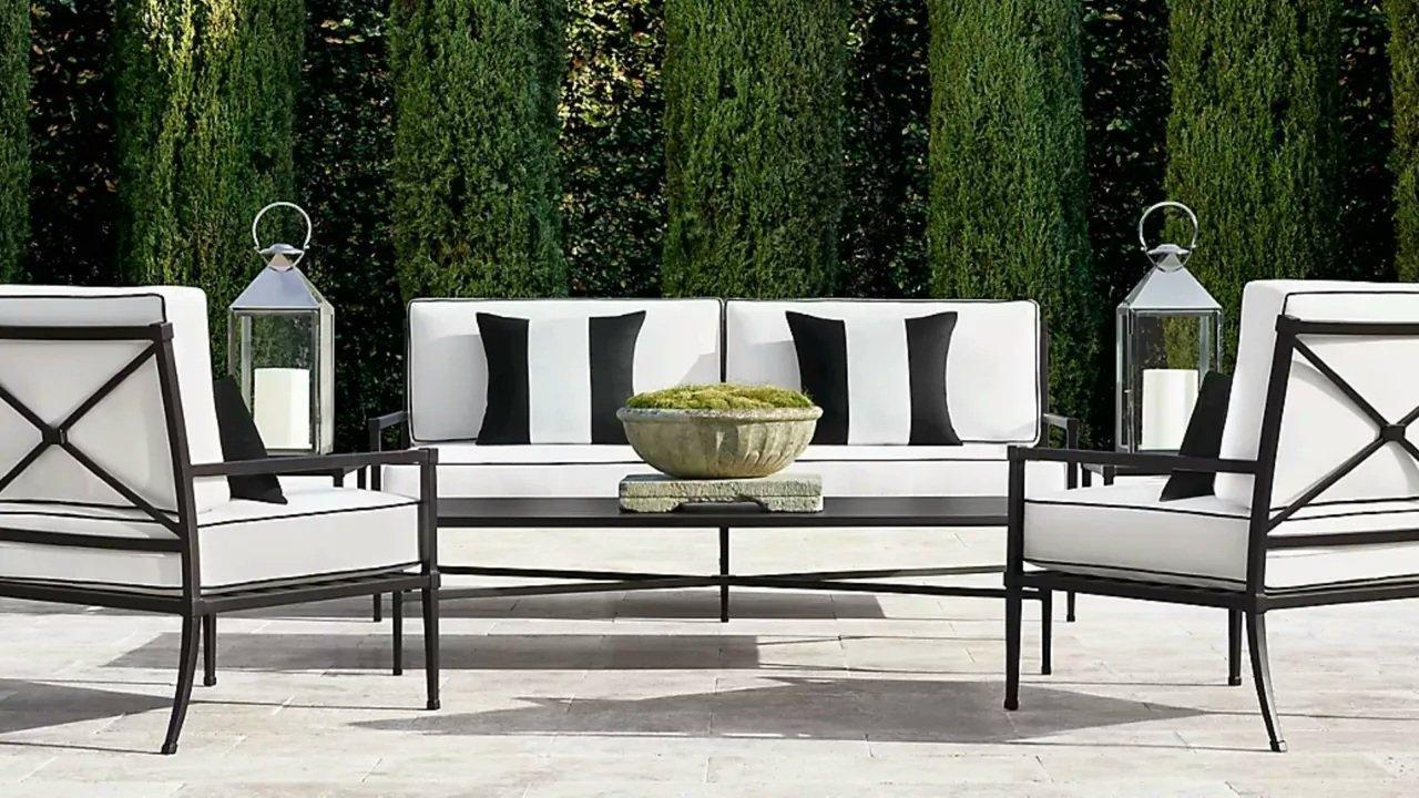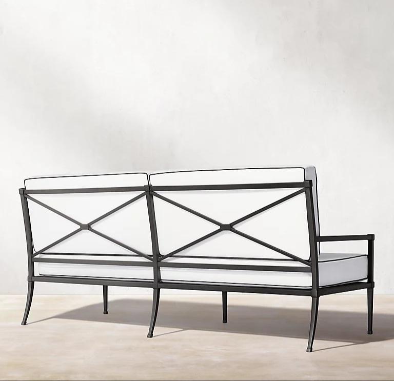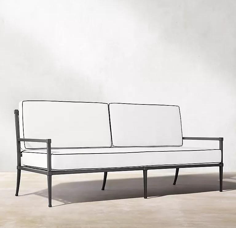 Regency Outdoor Black aluminium water resistant finish Sofa with waterproof white with black piping canvas fabric.