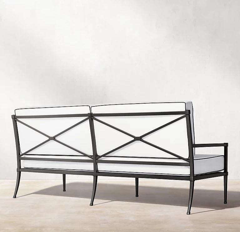 Regency Outdoor Black aluminium water resistant finish Sofa with waterproof white with black piping canvas fabric. cushion set is included.