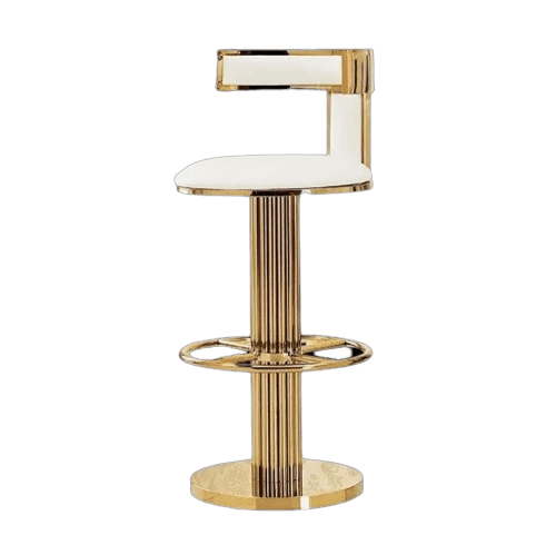 Regency White Velvet Gold Counter Stool. Modern Polished gold High Back Luxury Velvet Stainless Steel Swivel kitchen counter Bar Stool.