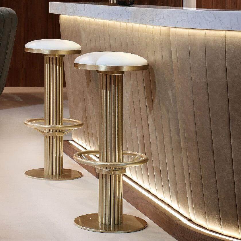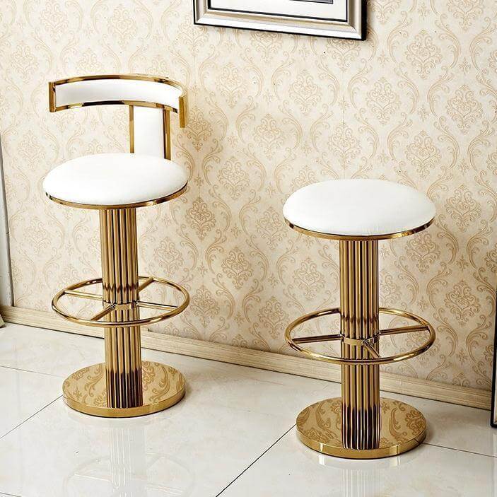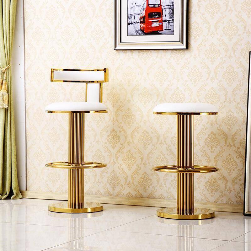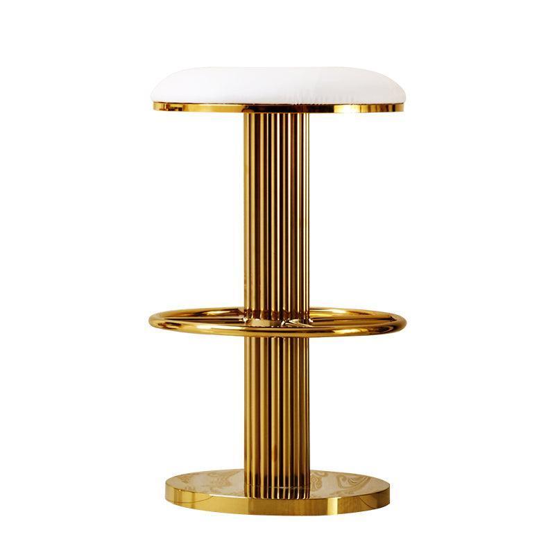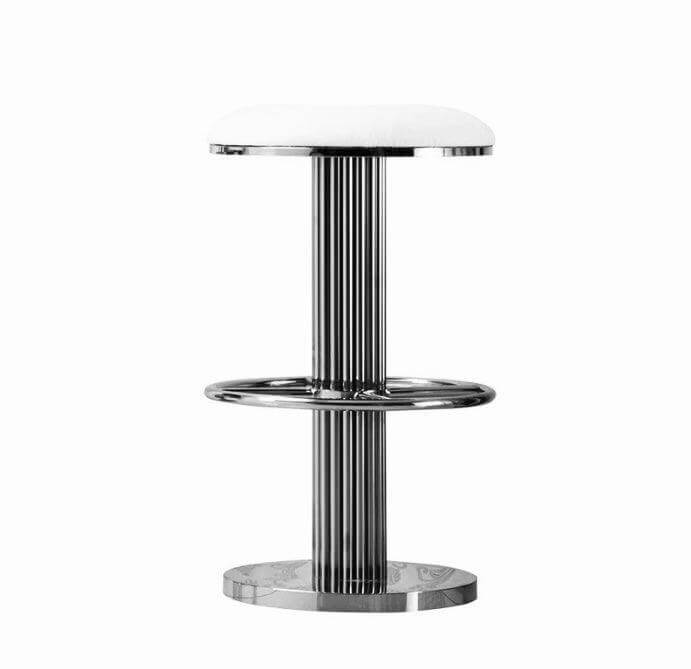 Modern white velvet barstool with stainless steel frame with polished Nickel finish with footrest