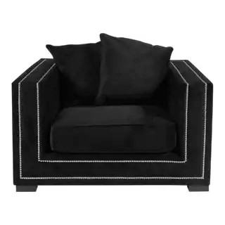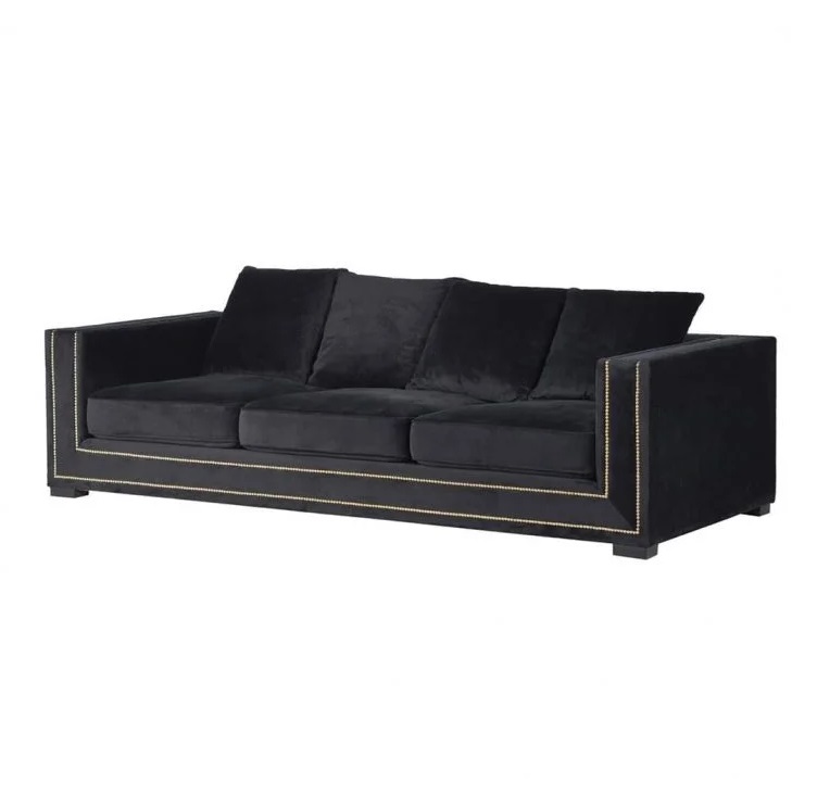 Regis Pillow Black Chenille Velvet Brass Sofa 110cm