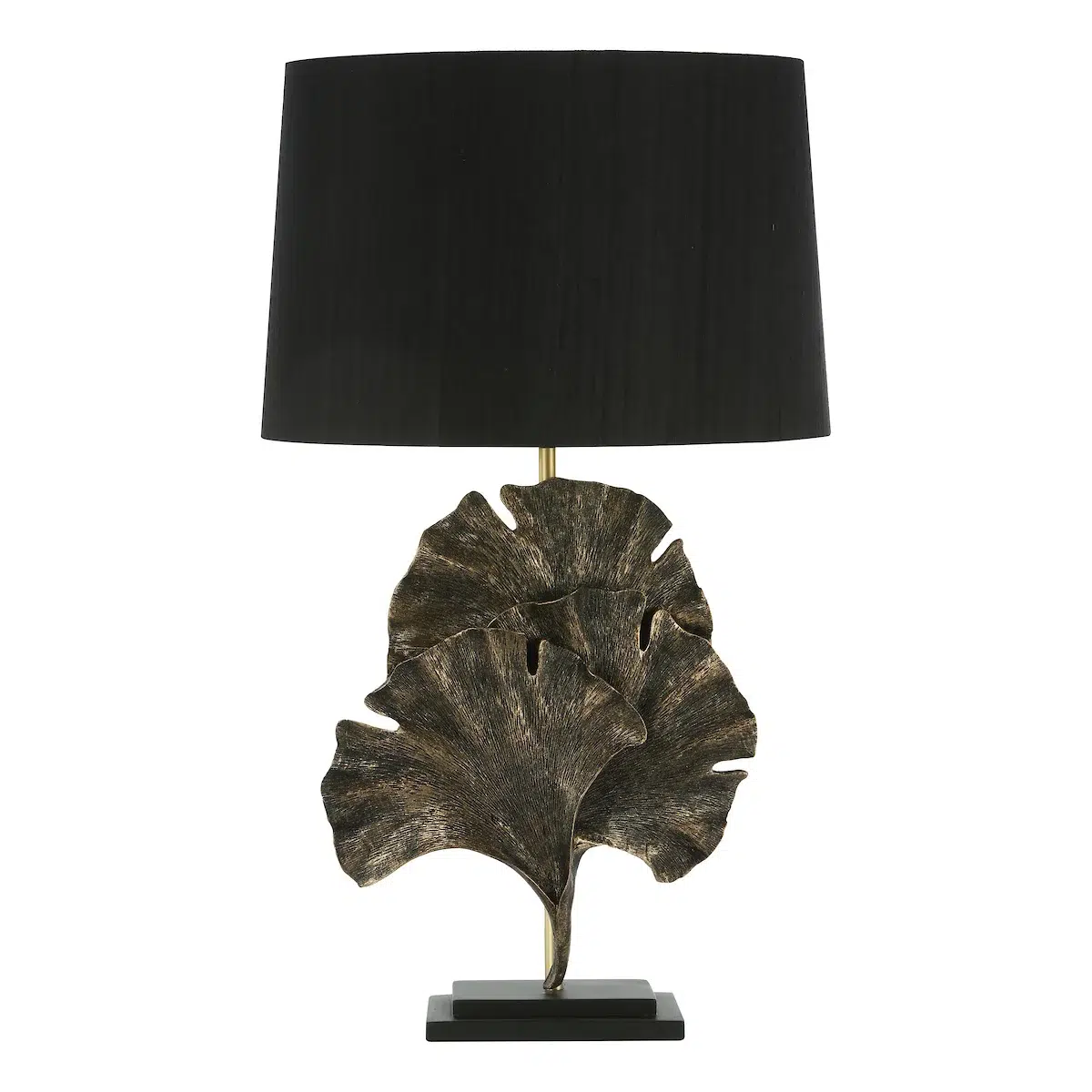 Rivage Bronze Palm Leaf Table Lamp with Black Shade