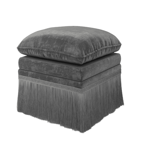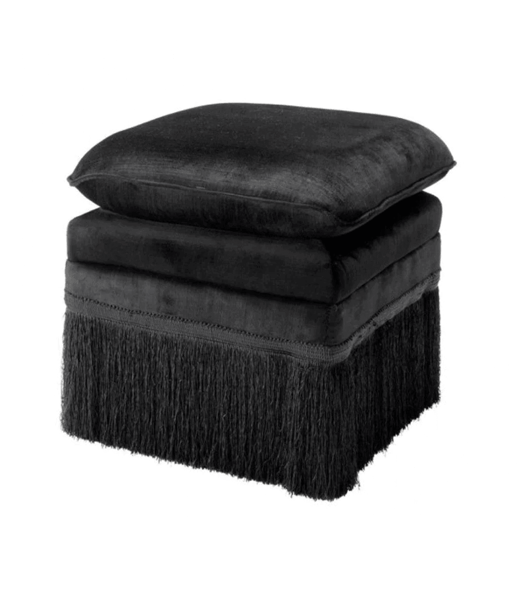 The Rochas stool will add a touch of luxury and glamour to your home. Featuring a generous soft cushion pad and a base with playful fringes, this opulent ottoman radiates boudoir chic.