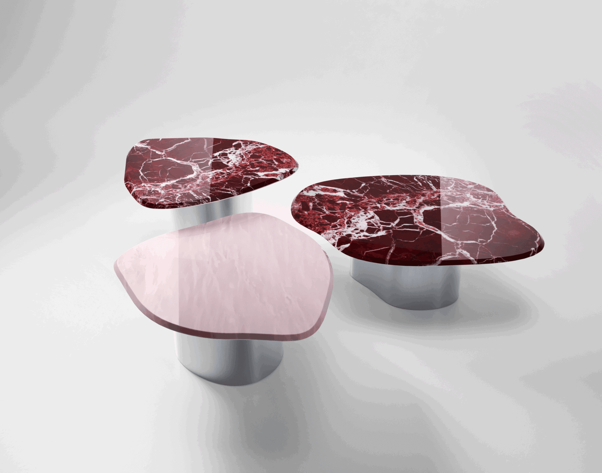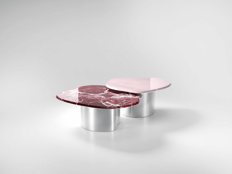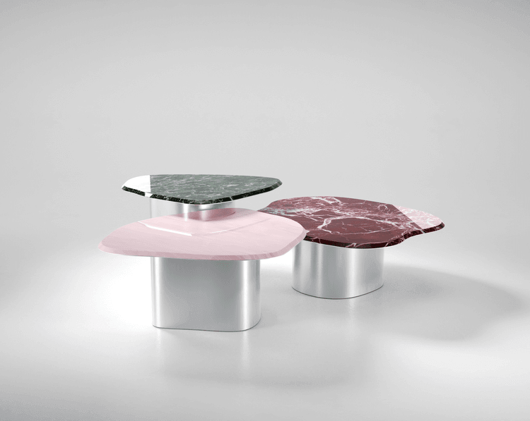 Roche Pink Marble Chrome Coffee Table Set