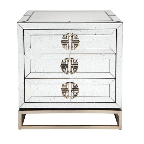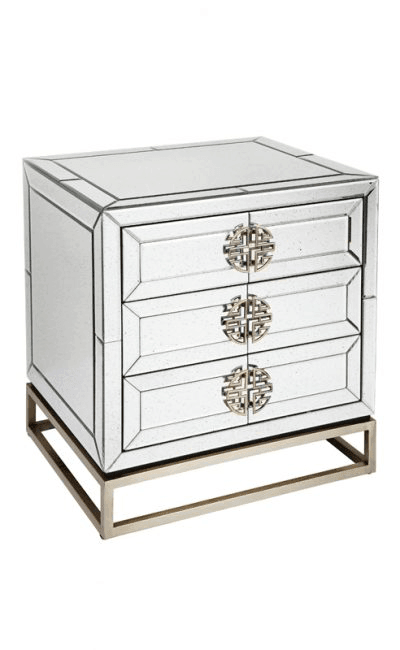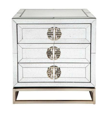 Rochester Antique Mirror Brass Large Bedside Table. One way to take great advantage of the reflective benefits of mirrors is to incorporate mirrored furniture. Create the wow factor with the simple, uncluttered lines of the Rochester Collection, constructed with hardwood and Bevelled mirror the Rochester collection is embracing contemporary design with glamorous purpose. Matching designs available in this collection to complete your room.