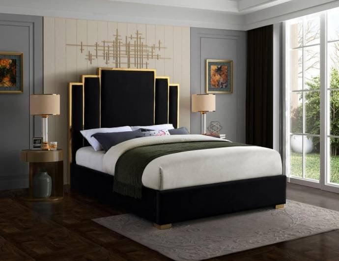 The Rochester Collection is Elegant and eye-catching, the stunning oversized handcrafted Gold Frame exudes elegance into any space and evokes old world Hollywood Glamour. The Rochester upholstered Bed is the perfect addition to any space. This luxurious velvet upholstered design features plush oversized channel headboard in beautiful thick plush commercial velvet fabric with deep channel tufted design for added comfort. This stunning collection features bespoke polished gold metal hardware which exudes class into any space.