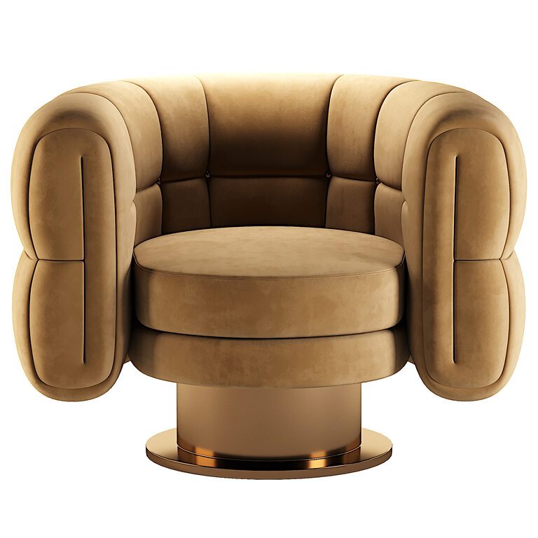 Romero Taupe Velvet Brass Swivel Chair