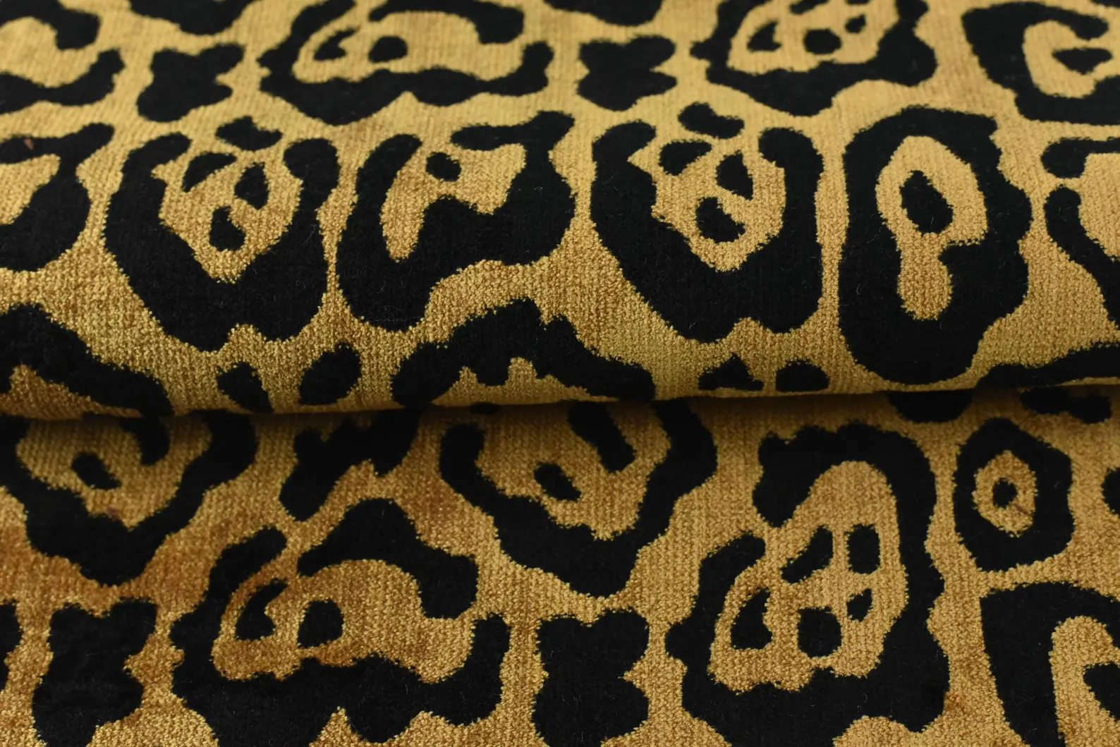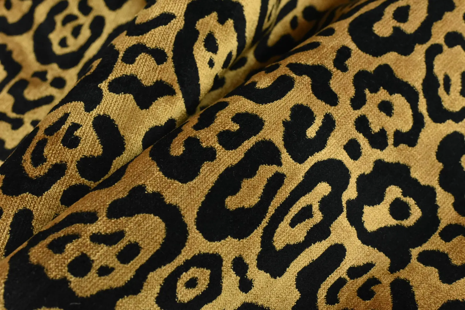Elevate the style of your space with our sophisticated Wild Collection – Leopard Cut Velvet Gold Black Upholstery Fabric. This timeless fabric features a vintage-inspired Leopard wild animal print in abstract geometric shapes, perfect for adding a touch of exotic glamour to any furniture piece. Crafted with a heavyweight construction, our fabric is designed for durability and is ideal for a variety of indoor upholstery uses. Whether you are looking to update your dining room chairs, office chair, or add a luxurious touch to your sofa, this fabric is the perfect choice.