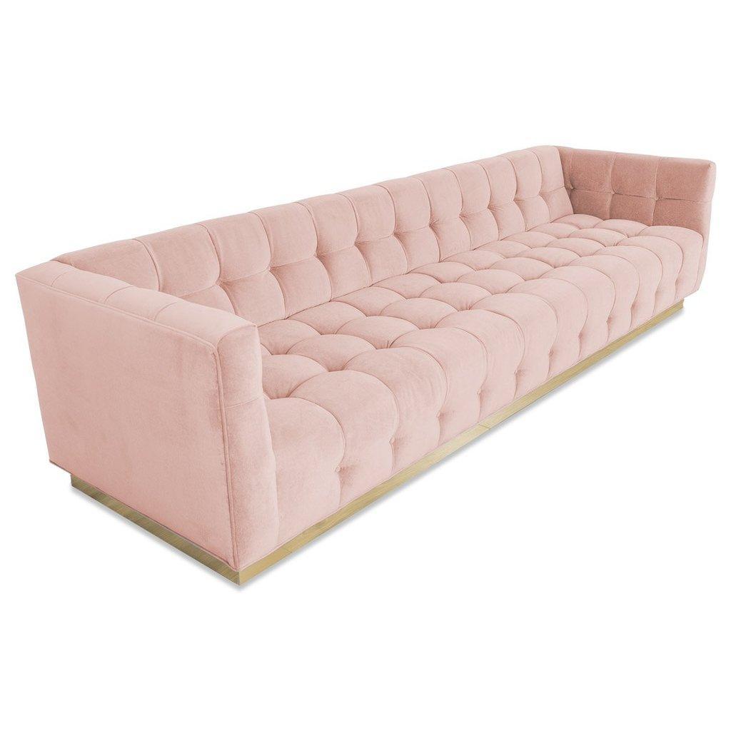 Instantly create a sense of drama and luxury in any room with the stylish Orlando Sofa in Velvet. This handcrafted sofa features a brass toe kick base and delicately folded biscuit tufting with pulled buttons in soft Velvet