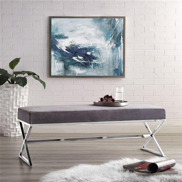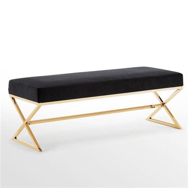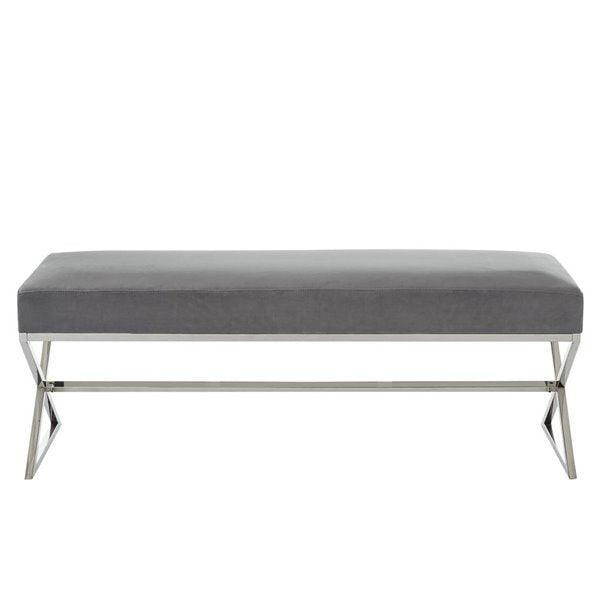 Our X-leg bench adds a gentle sophistication in the confines of your living room, bedroom or entryway. Featuring a velvet upholstered high density foam cushioned seat and extremely steady x-leg metal base. This elegant accent piece provides both functionality and a focal point of colour and style that seamlessly blend with your main furniture to create a dynamic and cozy interior space to come home to.