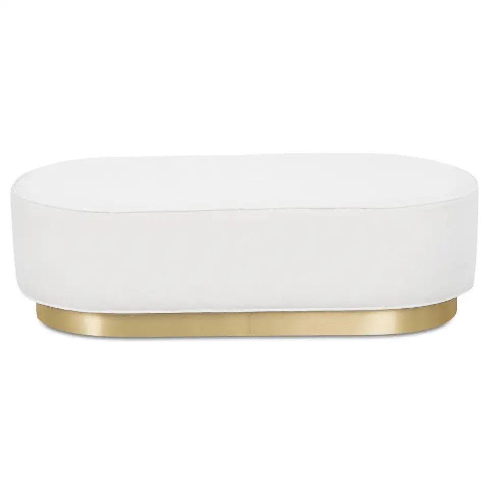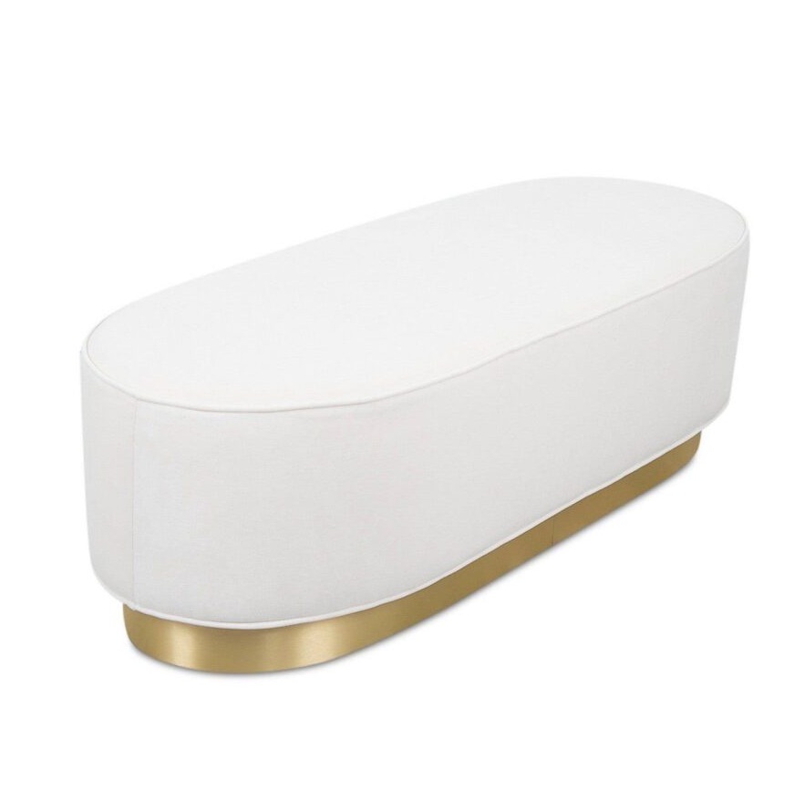 Savoy White Velvet Brass Ottoman Bench 150cm