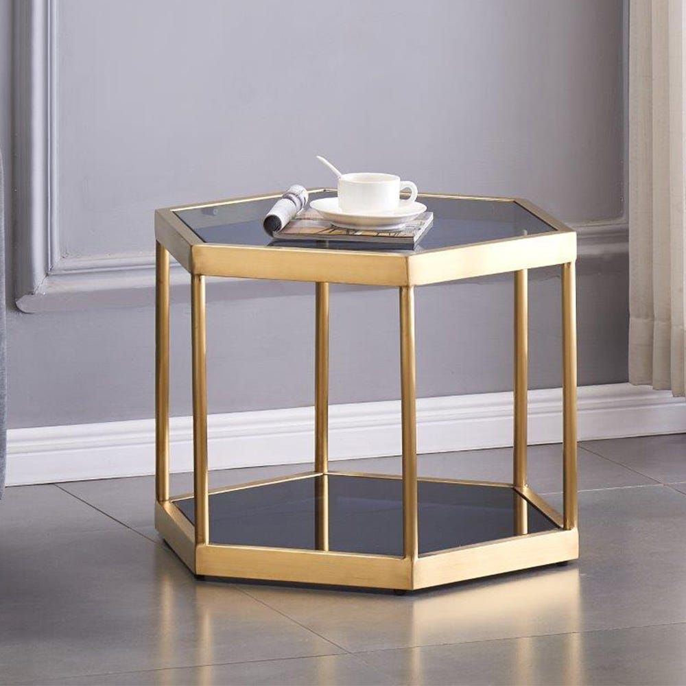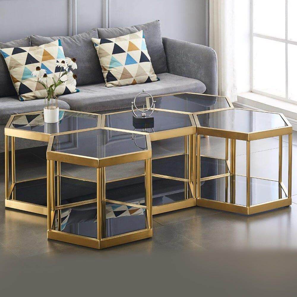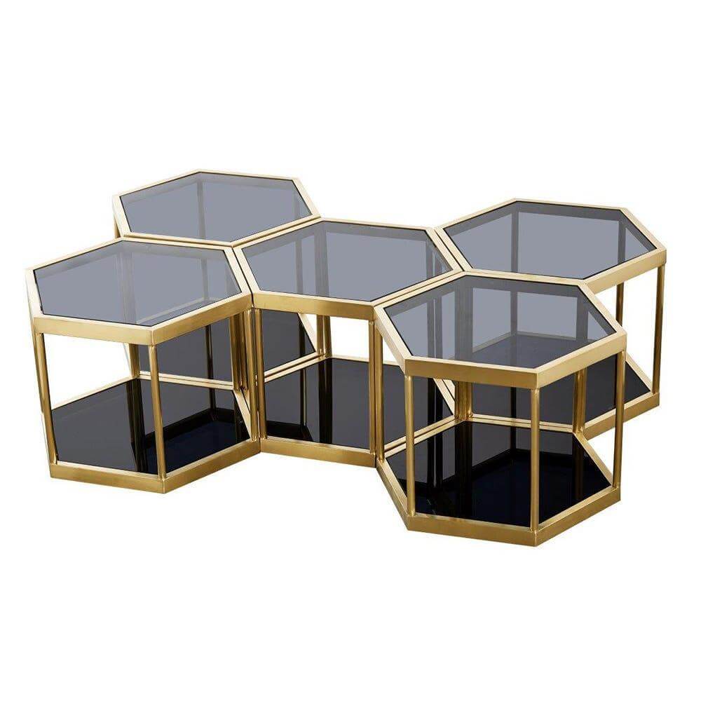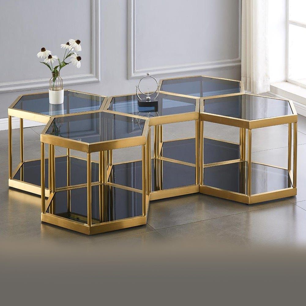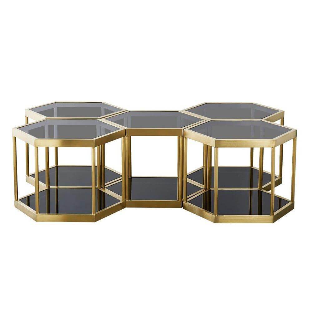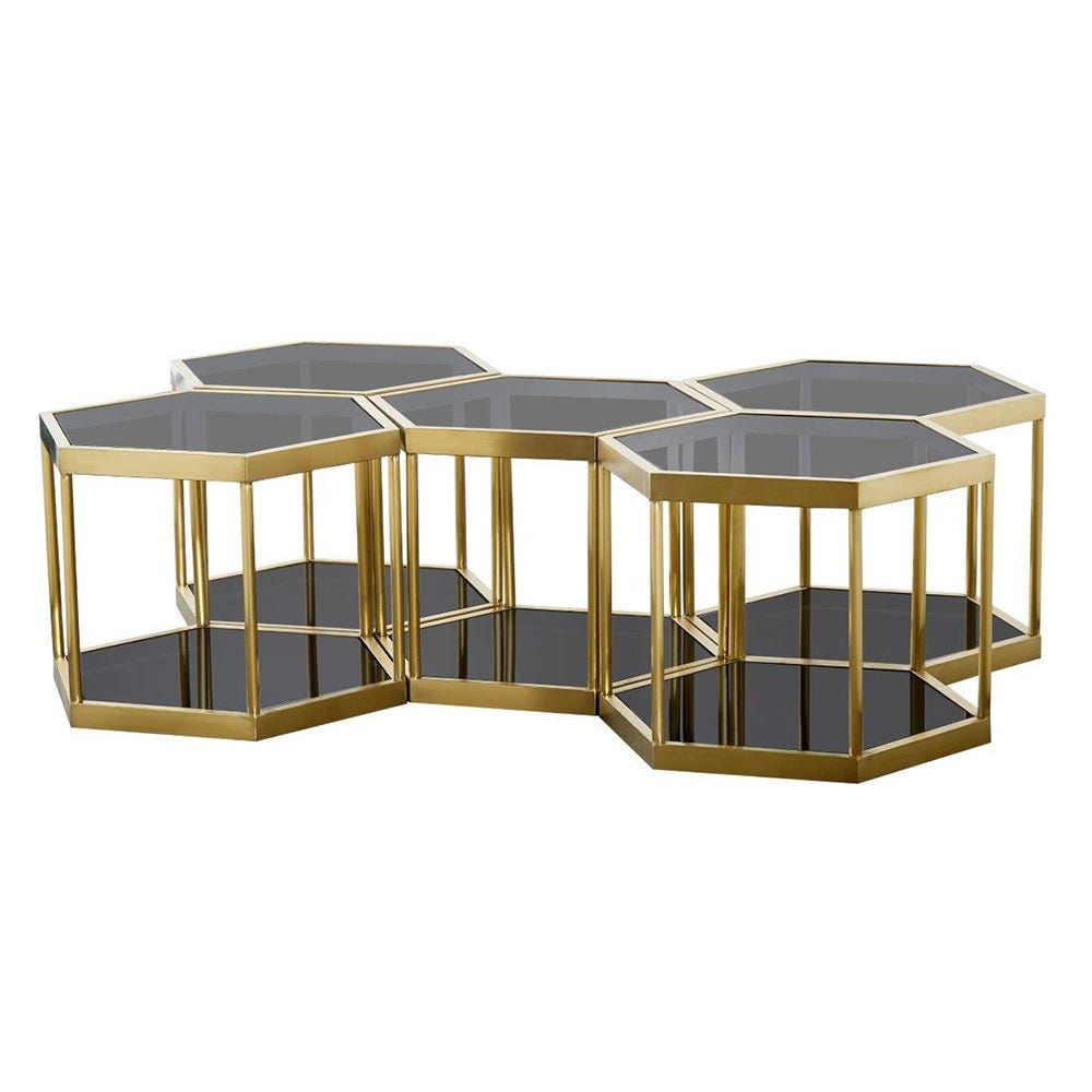 • Dante Black Glass Brushed Gold Coffee Table Large Set