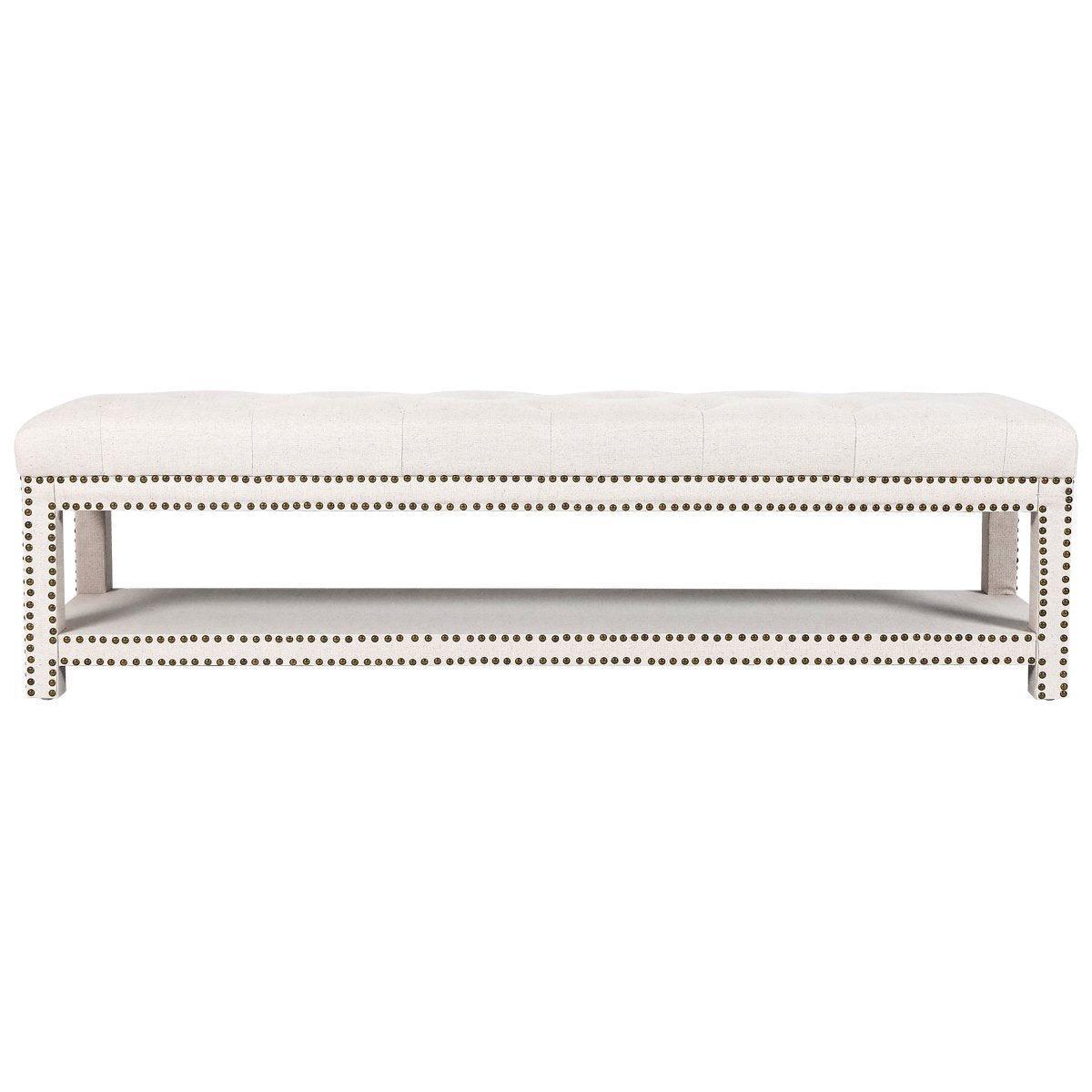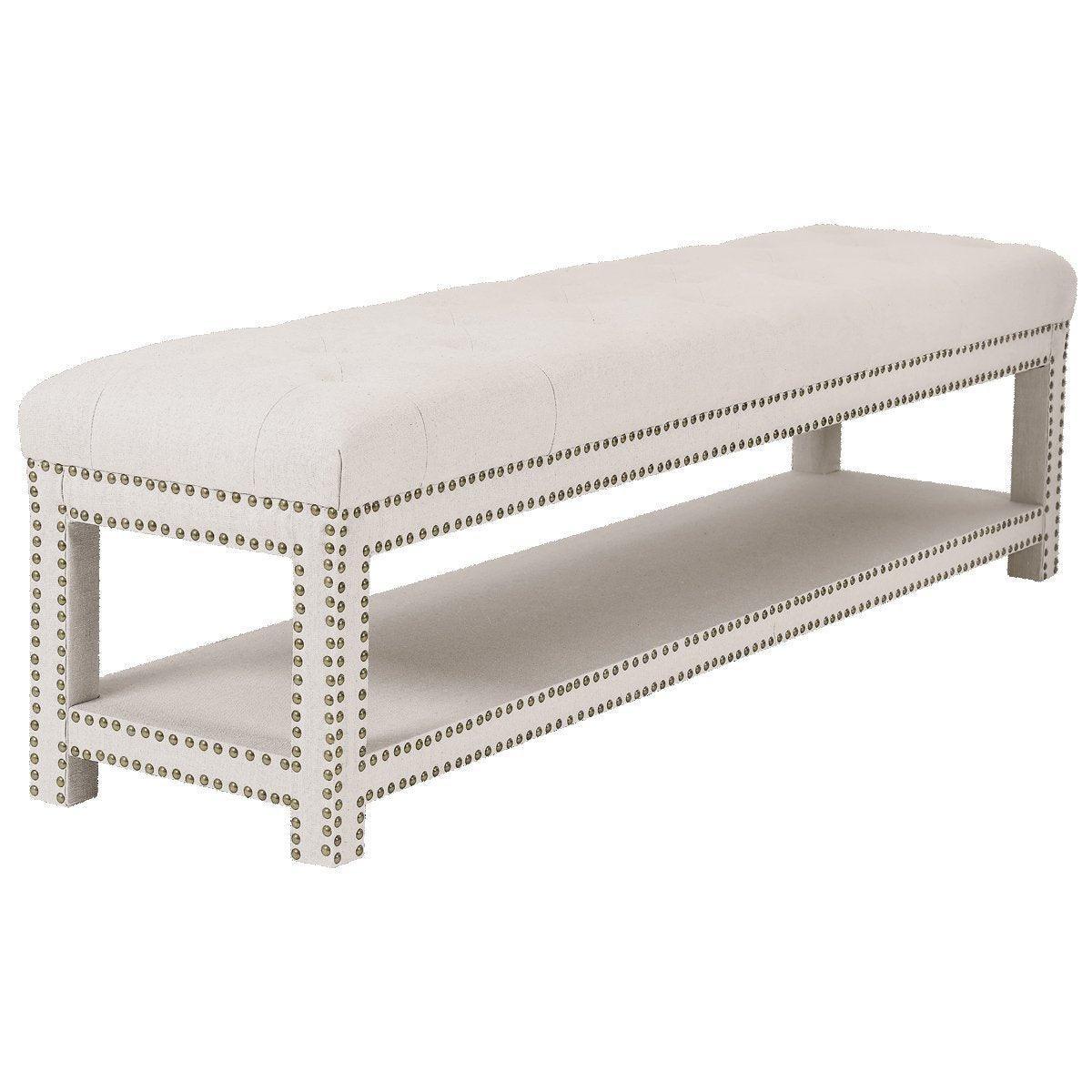 Serena Light Beige Linen Bronze Studded Bench