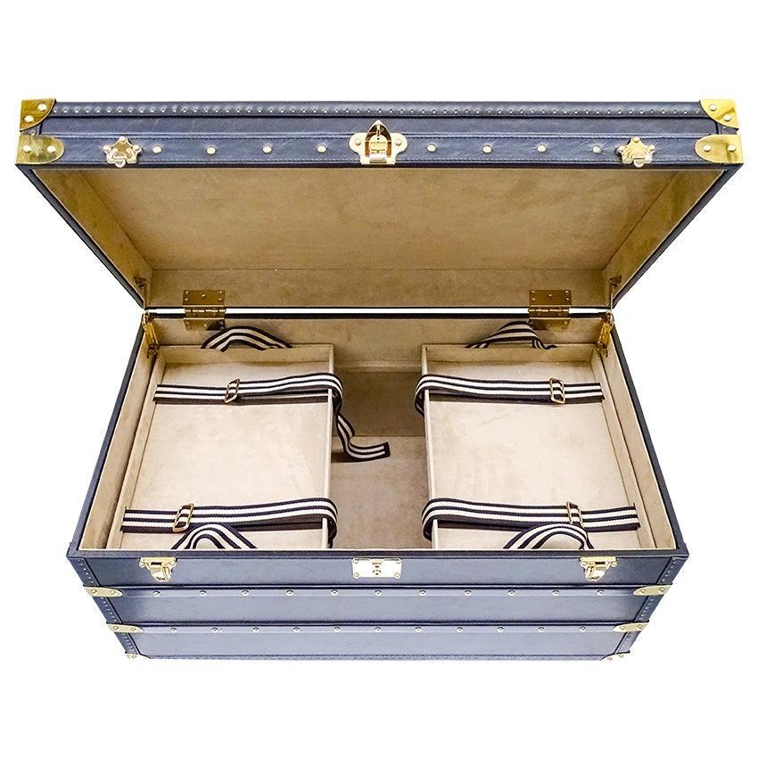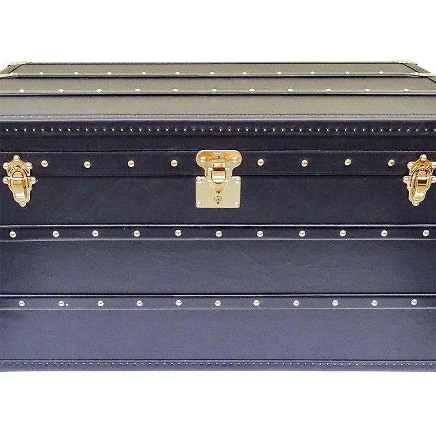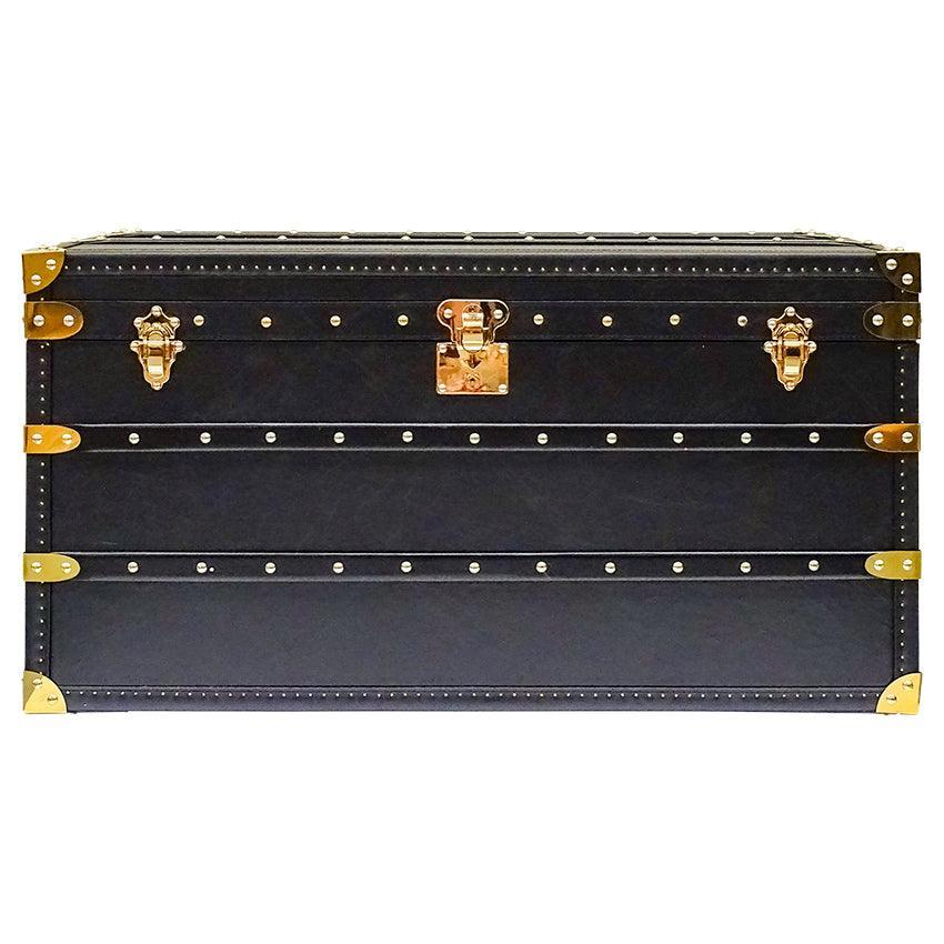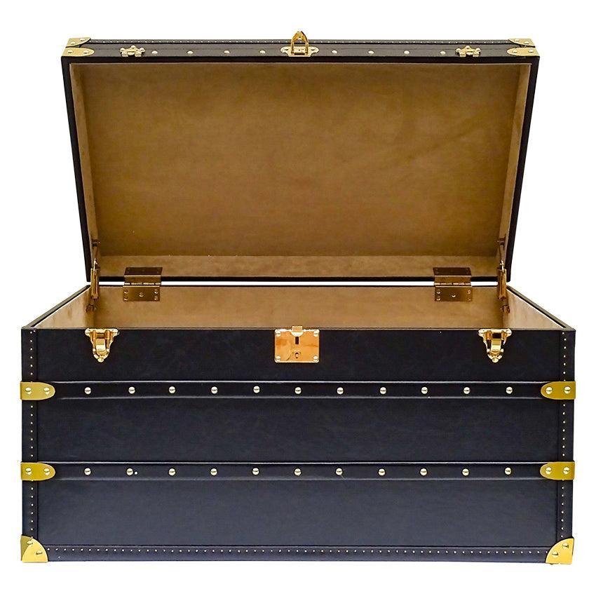 Seville Black Genuine Leather Trunk 93cm. A Coffee Table Storage Trunk? What more could you ask for? Class, Style, functionality! This trunk has it all. Evoking the old world charm of long passage and romantic trunk luggage with modern sophistication, the Seville has been transformed into a functional furniture item, while preserving all the hallmarks of traditional craftsmanship in its construction and detail. Place at the end if your bed fir storage, in the living room to store precious items, or as a coffee table.