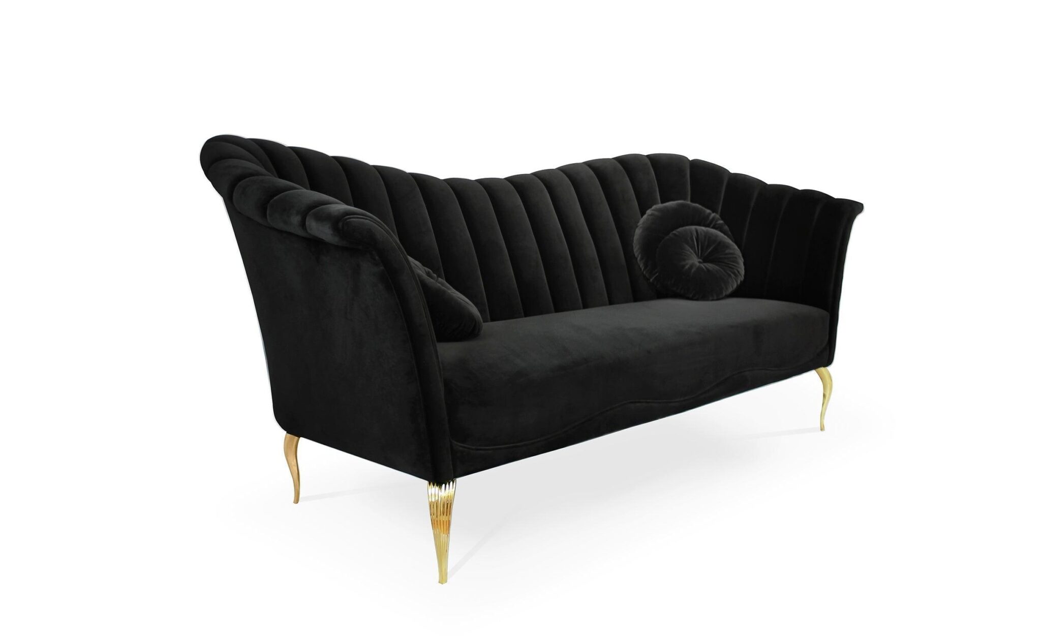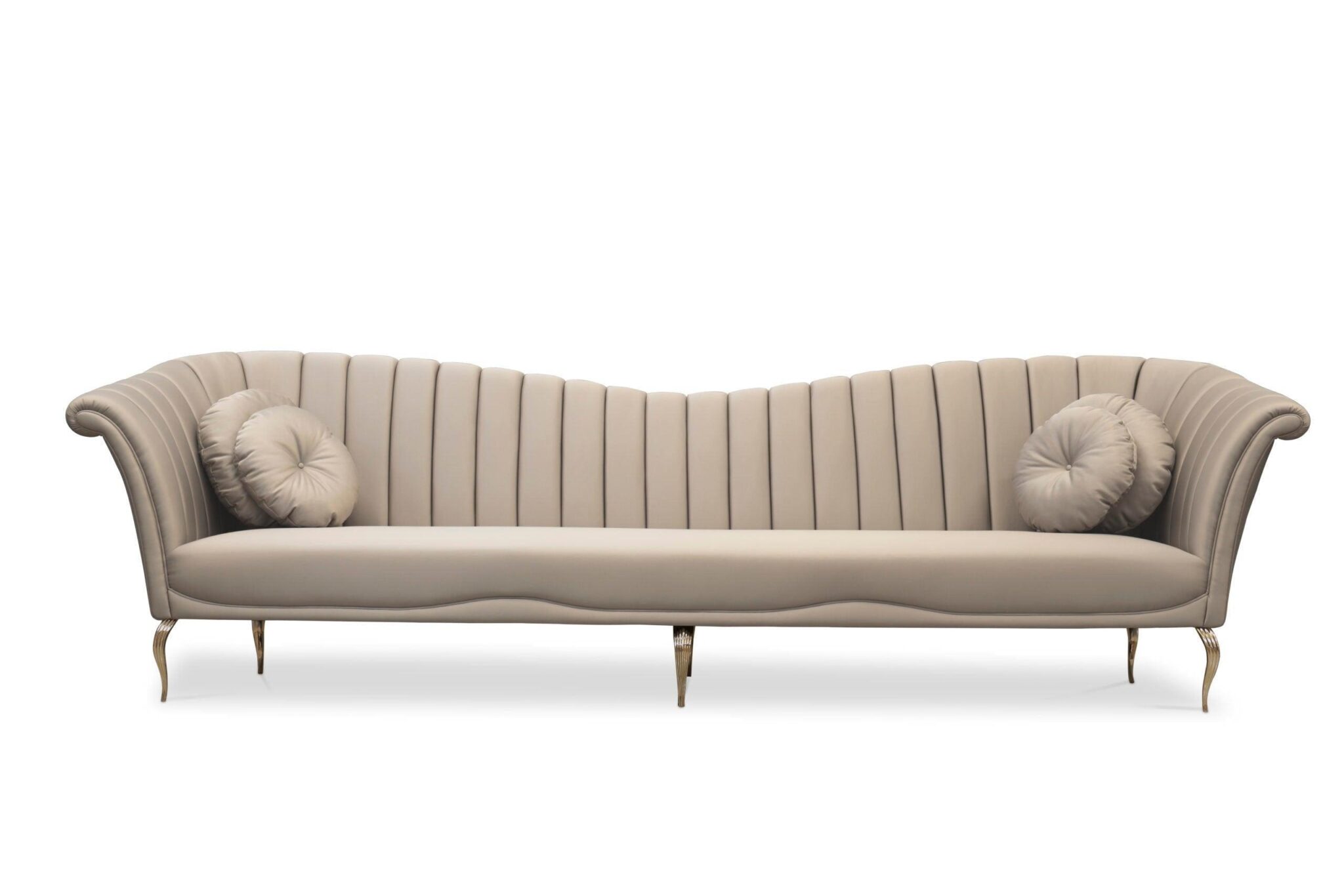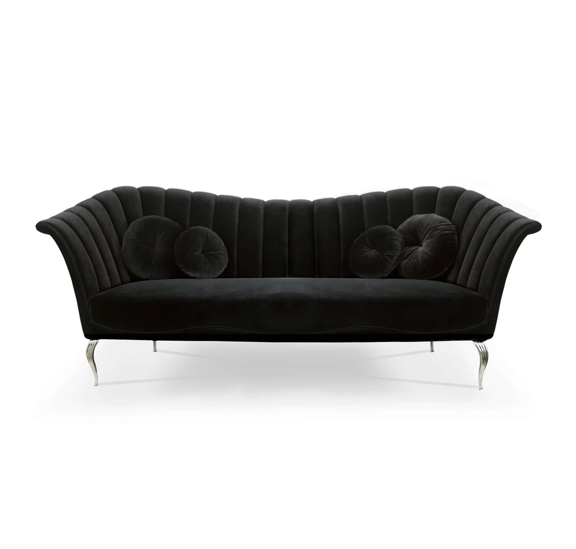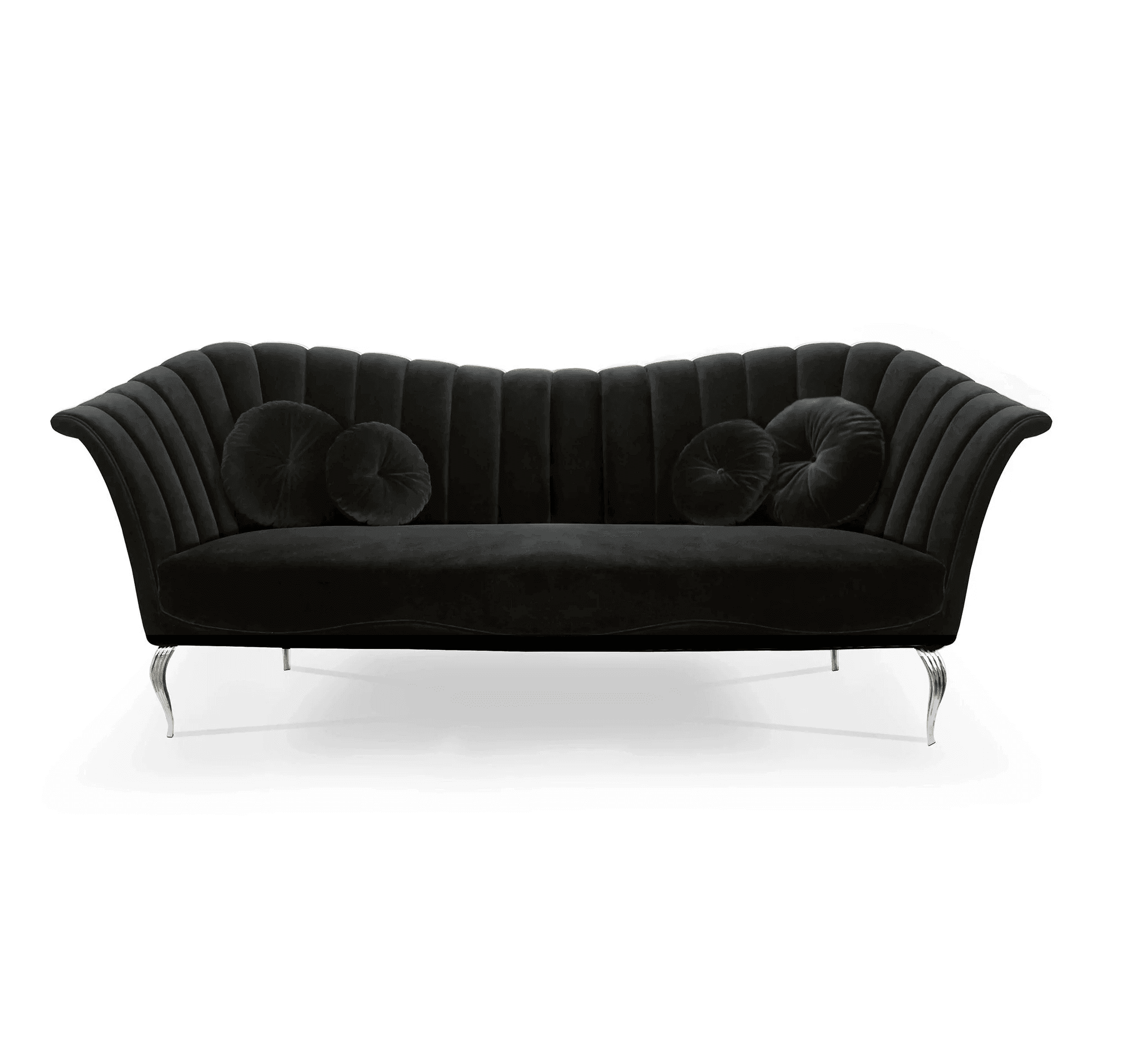 Flirty and unpredictable like a modern woman, the Sevilliana voluptuous sofa design mimics a womans most desirable curves. Fitted like a little black dress in delicious upholstery fabric and resting on dainty Chrome silver feet.