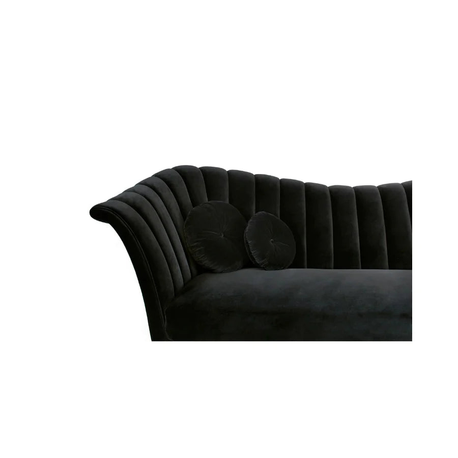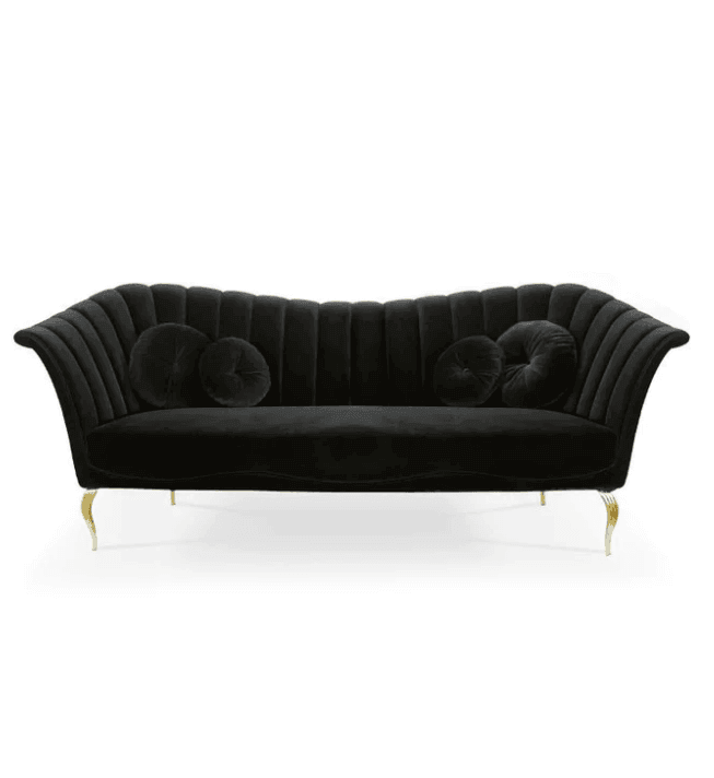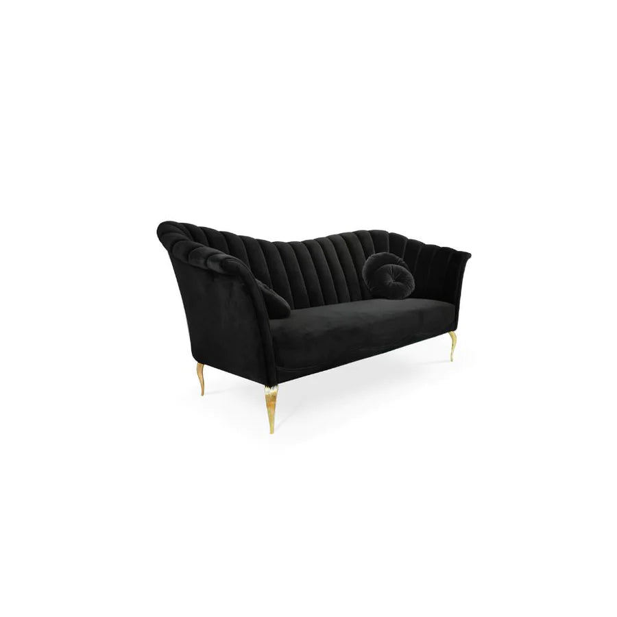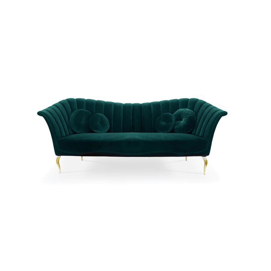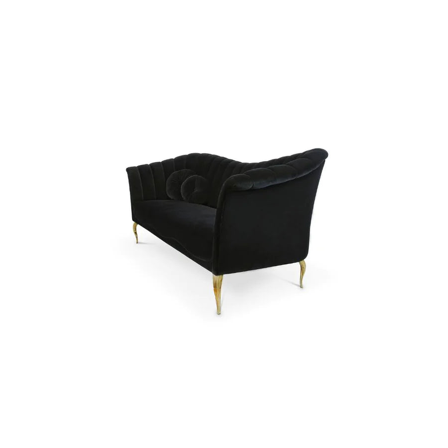 Flirty and unpredictable like a modern woman, the Sevilliana voluptuous sofa design mimics a womans most desirable curves. Fitted like a little black dress in delicious upholstery fabric and resting on dainty gold feet.