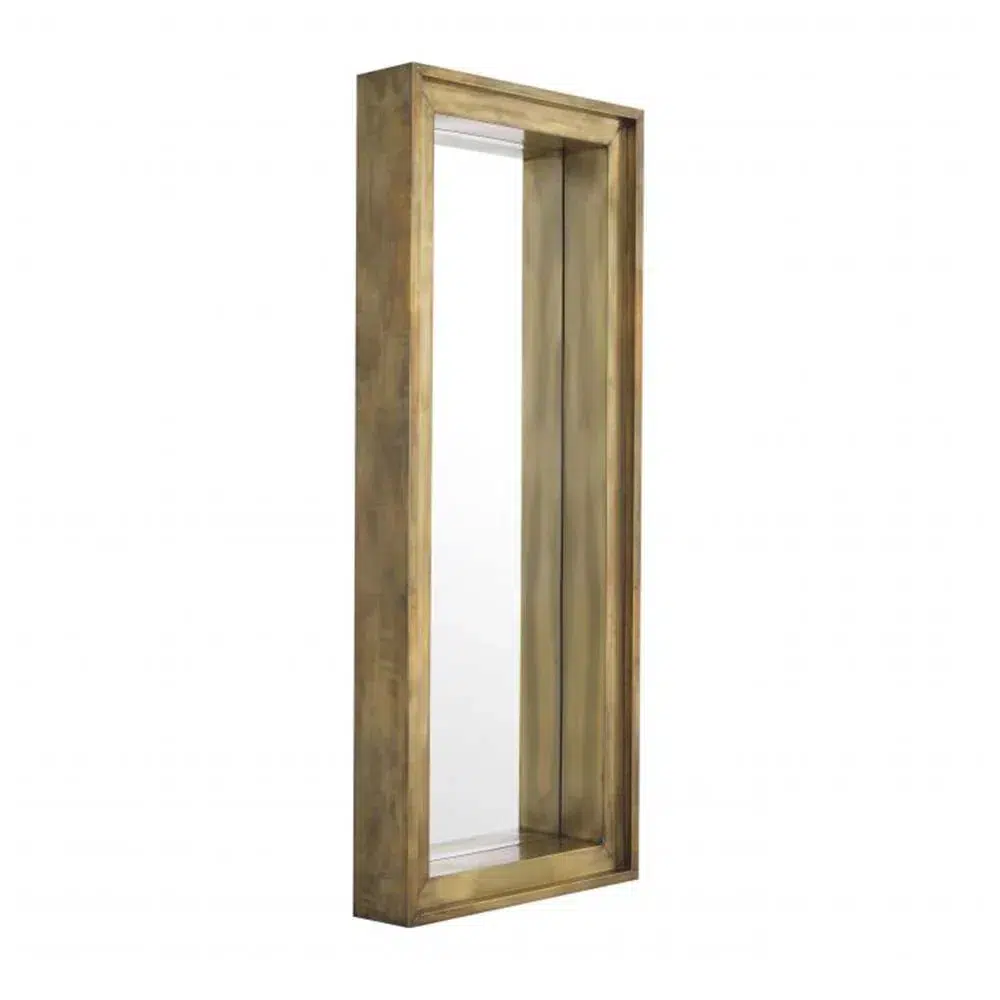 Consider the rectangular Shadow Mirror for a finishing touch in your bedroom or entryway. The deepened frame of this wall mirror comes in a vintage brass finish, making this item ideal for minimalist spaces or as a quiet anchorpiece in more bold interiors.