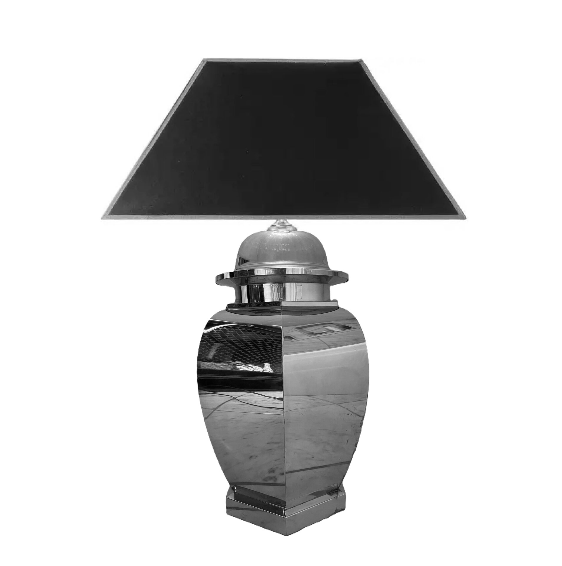 Silom Chrome Temple Jar Lamp with Black Shade