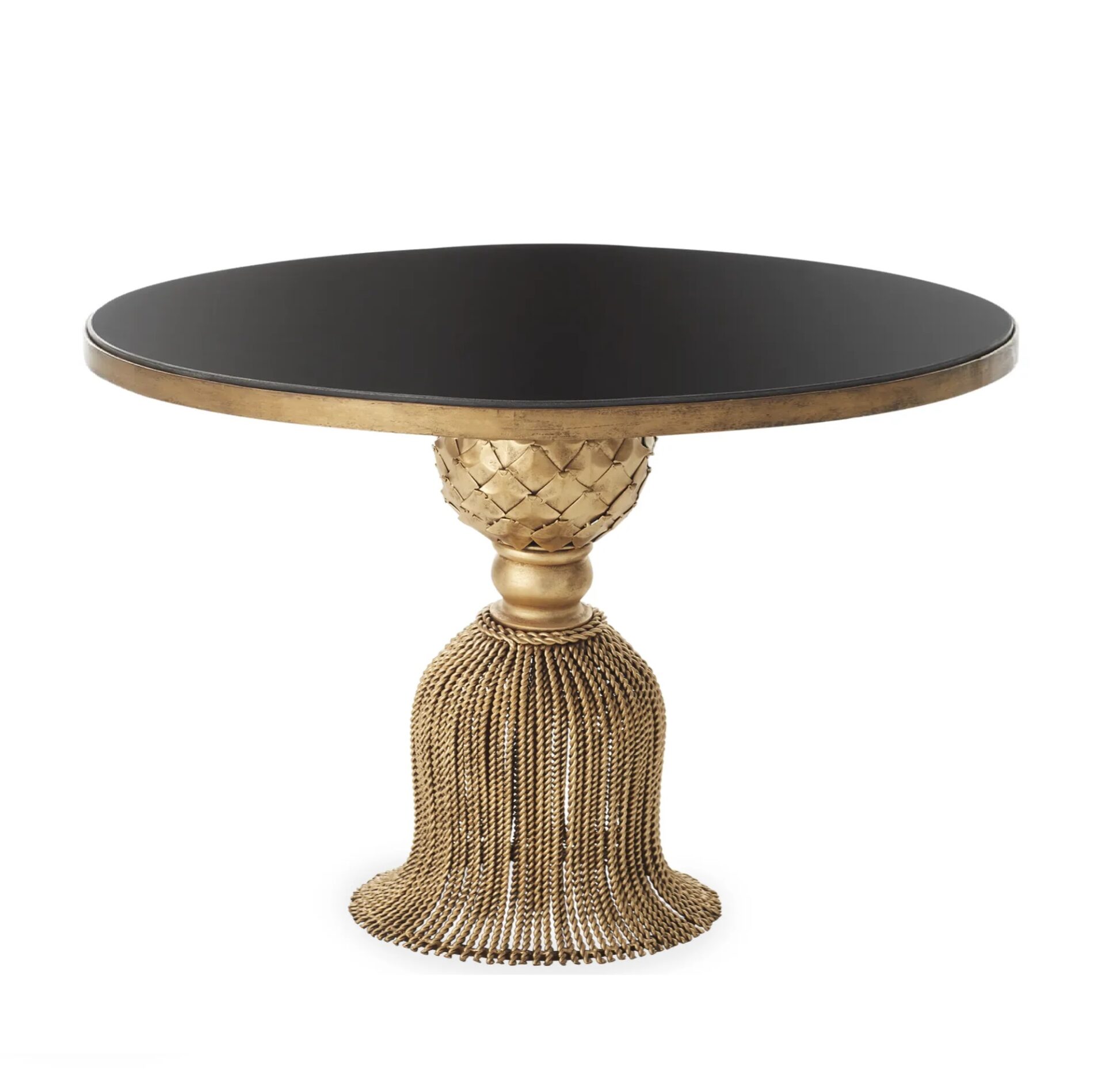 The tassel collection offers a luxurious, solid Italian marble top and stunning polished antique brass that will make a statement. Its heavy construction and hand forged iron make it an elegant and long lasting piece. Contemporary styling, this handcrafted brass coffee table features a white marble top and a brass tassel like design offering abstract detailing, accents your living room or searing room area. Each one of our iron and marble tables are hand forged in solid iron and then finished in a multi-step process delivering a stunning brass golden finish.