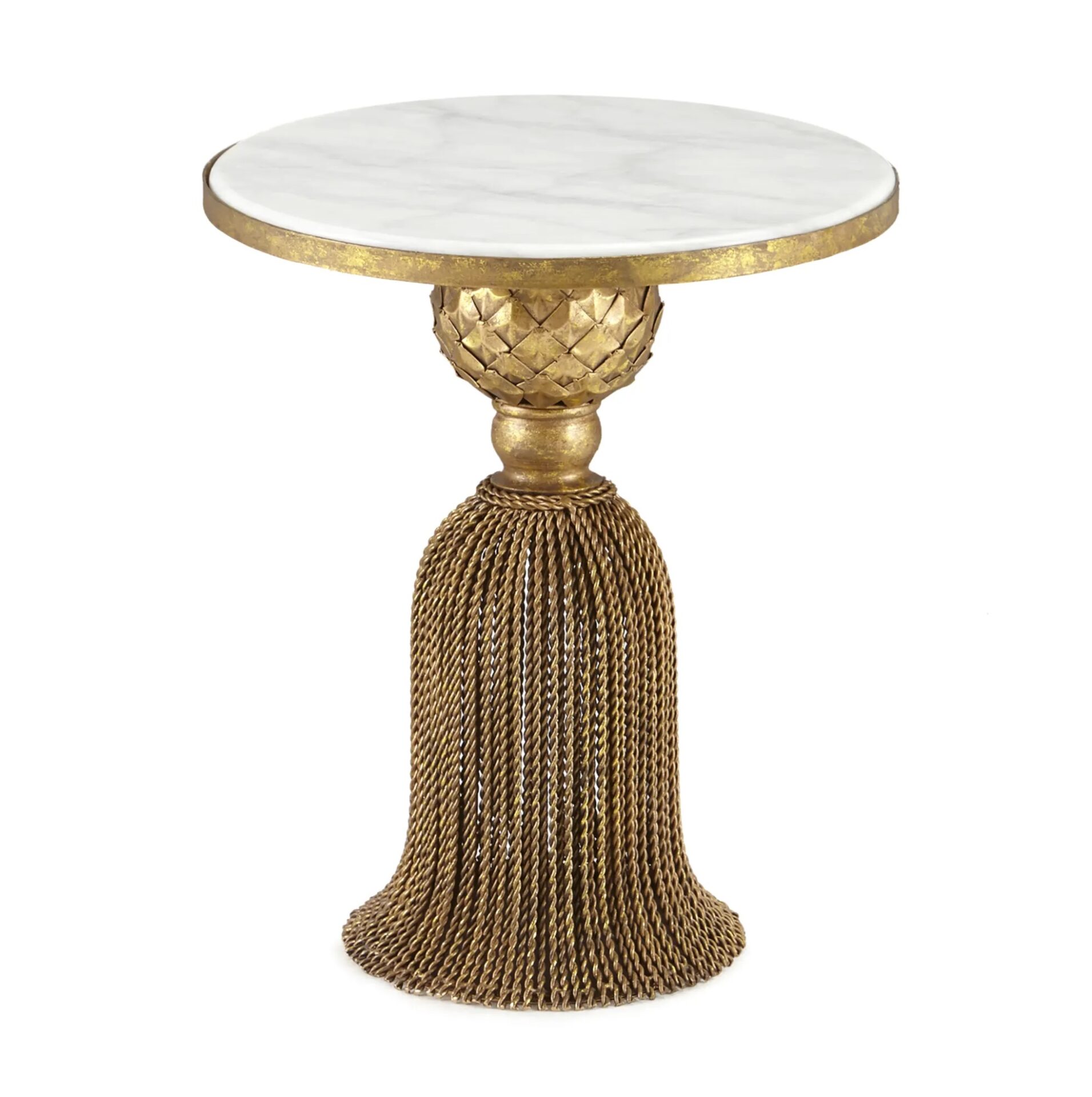 The tassel collection offers a luxurious, solid Italian marble top and stunning polished antique brass that will make a statement. Its heavy construction and hand forged iron make it an elegant and long lasting piece. Contemporary styling, this handcrafted brass dining table features a white marble top and a brass tassel like design offering abstract detailing, accents your living room or dining room area. Each one of our iron and marble tables are hand forged in solid iron and then finished in a multi-step process delivering a stunning brass golden finish.