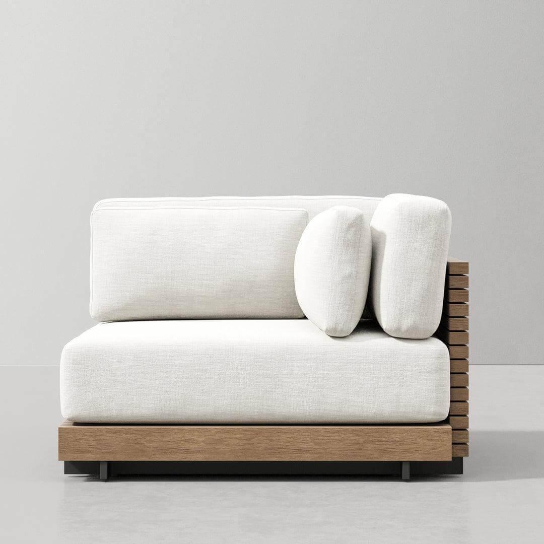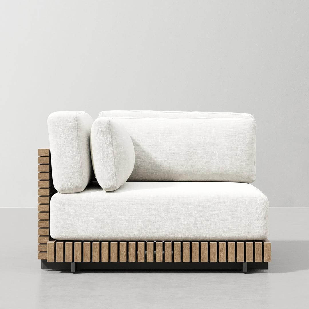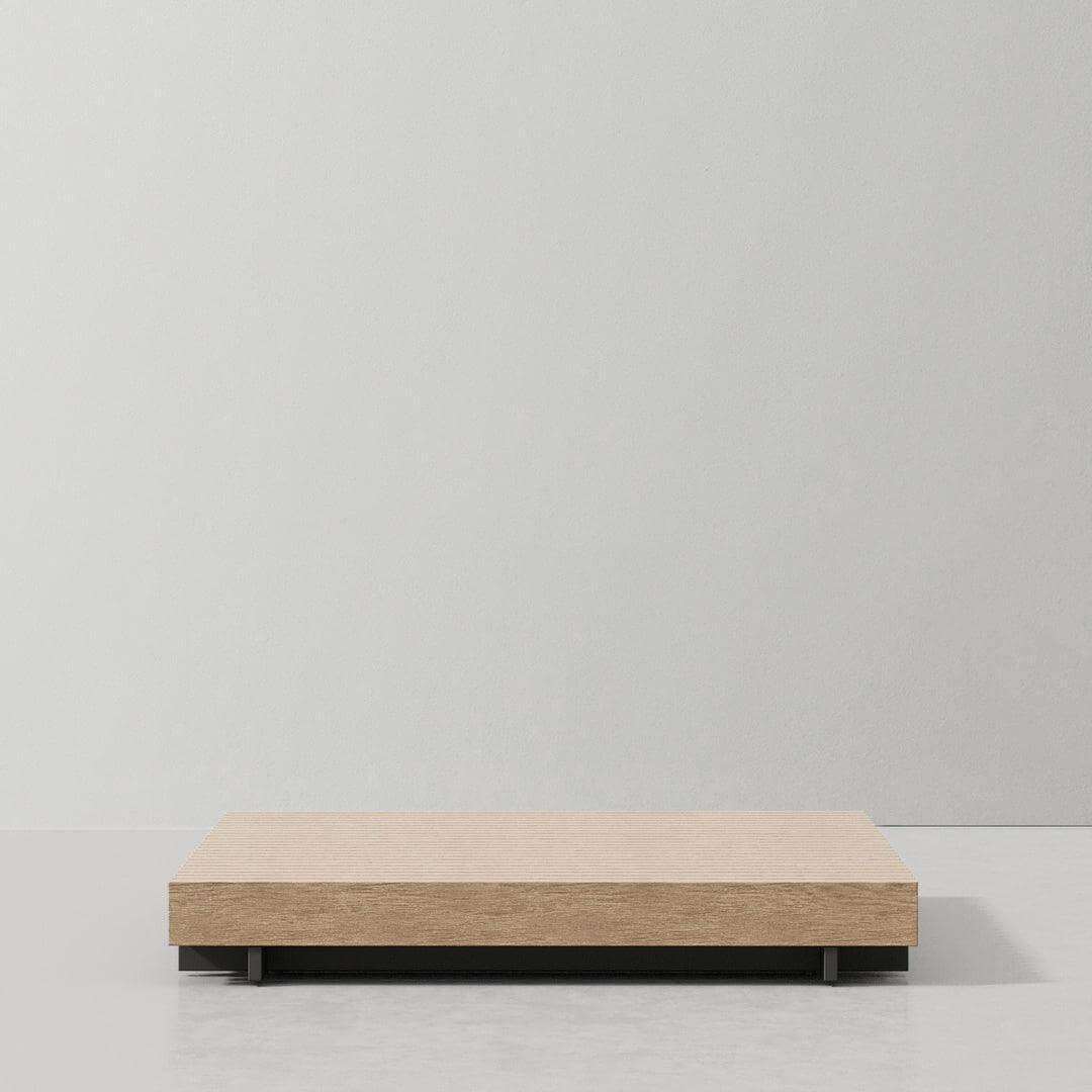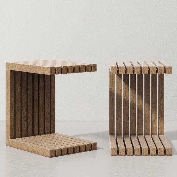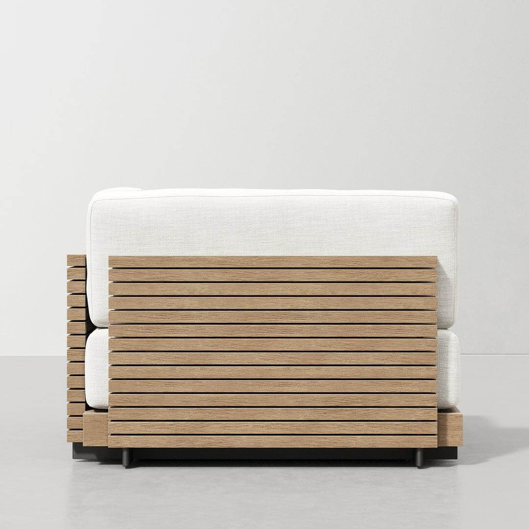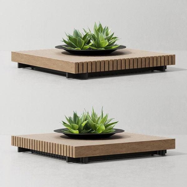 Teakwood Outdoor Sidetable. Handcrafted with Premium weather resistant materials with waterproof powder coasted black aluminium base and linear Weatherproof teak wood in Natural finish.