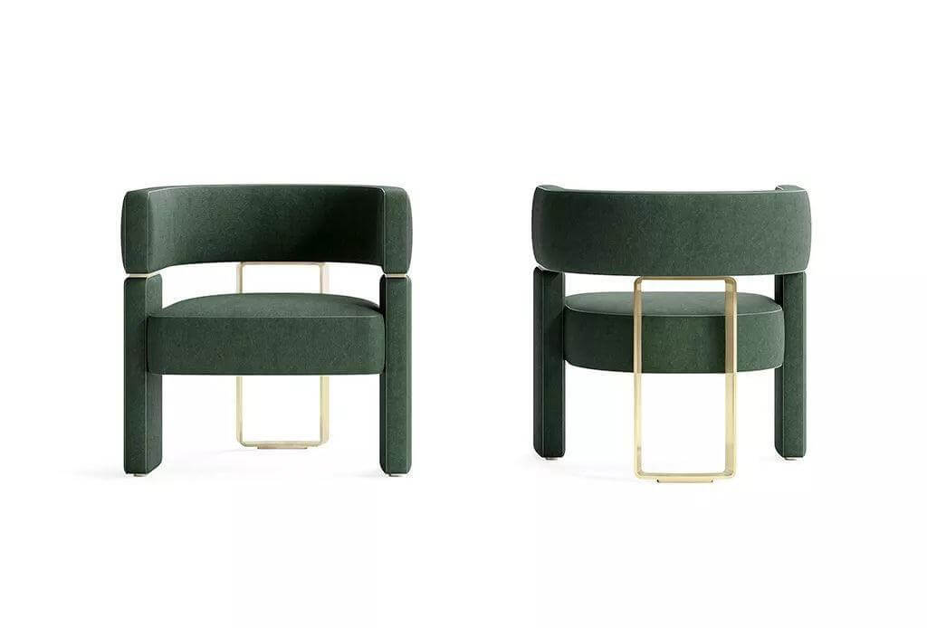 Tempo Green Velvet Gold Chair - Avant Garde Furniture - Designer Furniture Store & Luxury Home Decor Green modern chair with gold accents.
