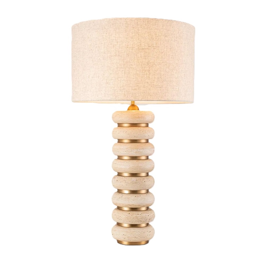 Trend Travertine Brass Table Lamp with Natural Linen Shade