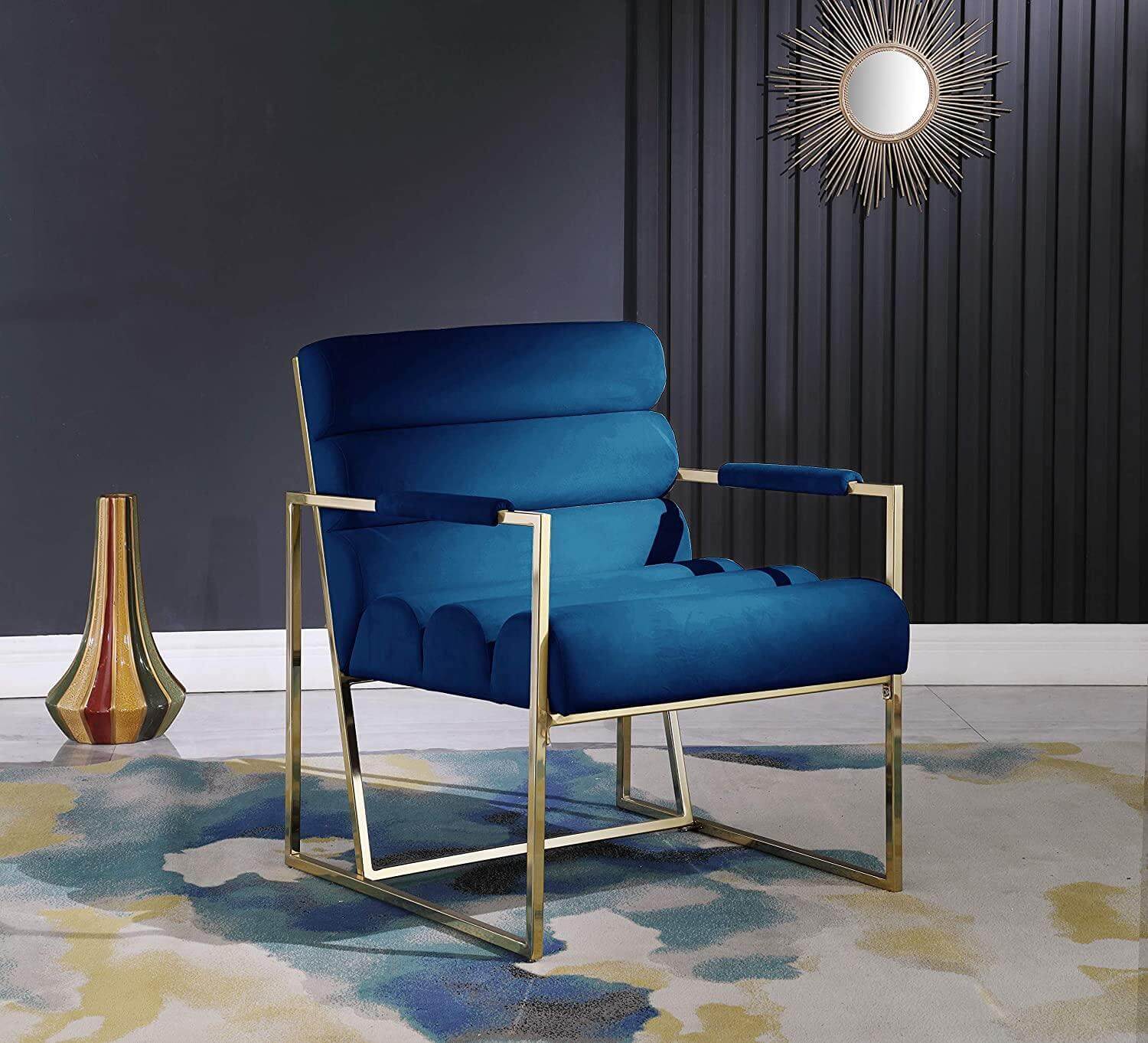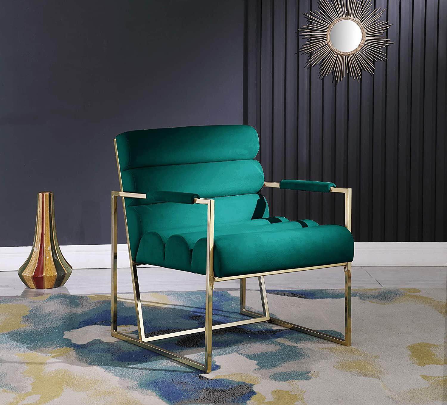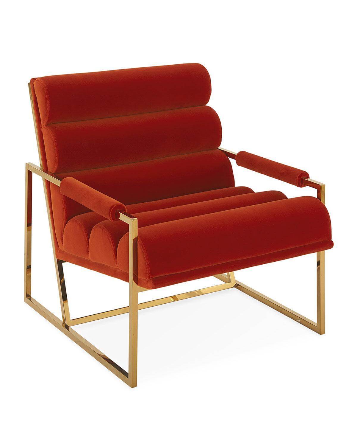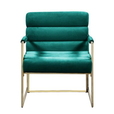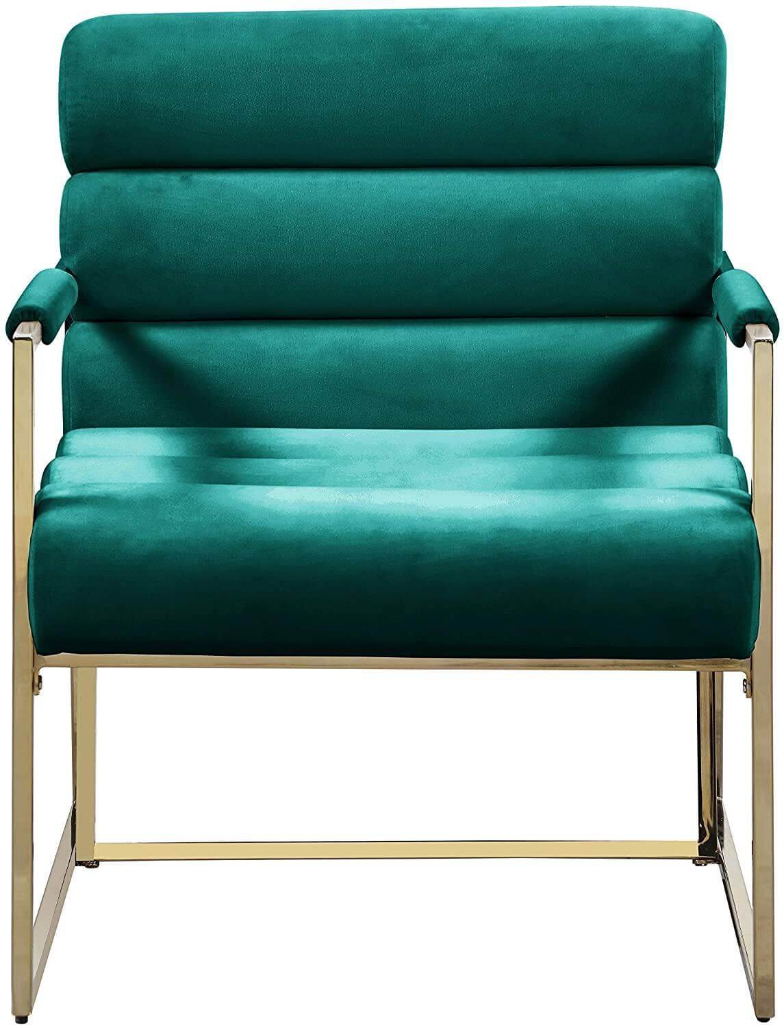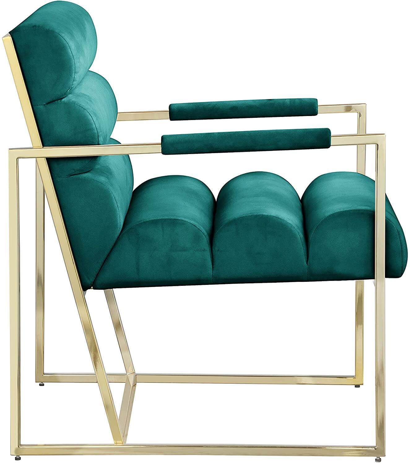 Trendsetter Green Velvet Gold Armchair. Luxury design golden mirror stainless steel frame armchair with red velvet seat back, use high density foam in order to bring more comfortable and easeful to user. Suitable for hotel lobby, home living room, office or high class restaurant.