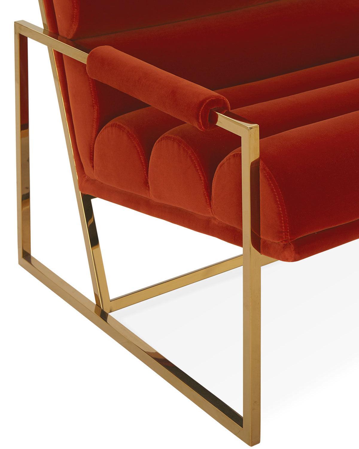 Trendsetter Red Velvet Brass Armchair. Luxury design golden mirror stainless steel frame armchair with red velvet seat back, use high density foam in order to bring more comfortable and easeful to user. Suitable for hotel lobby, home living room, office or high class restaurant.