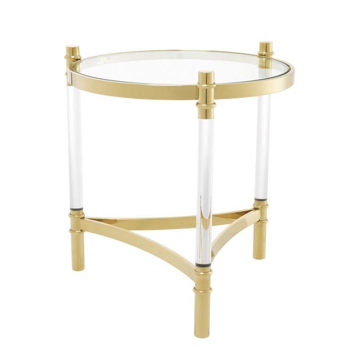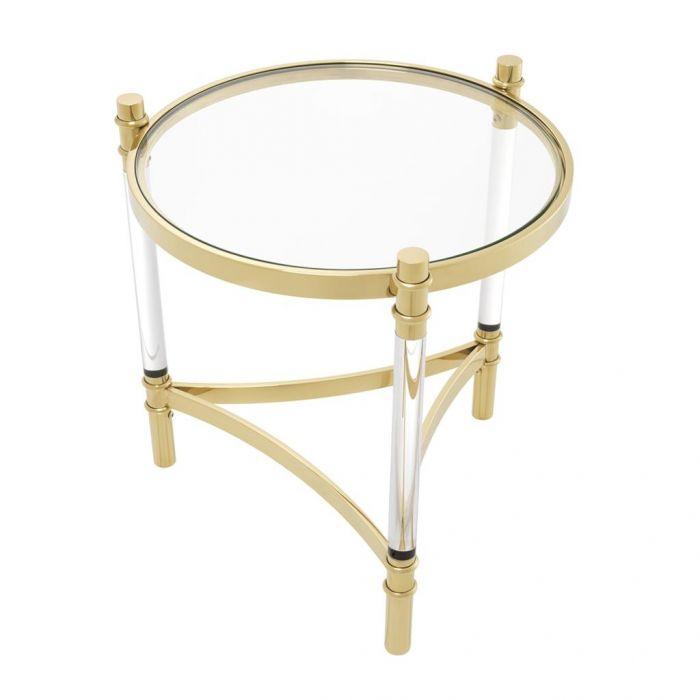 Trento gold and clear acrylic side table with clear glass top