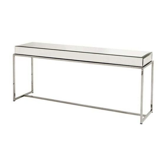 Trevi polished chrome stainless steel base console table with clear Bevelled Mirror Top.