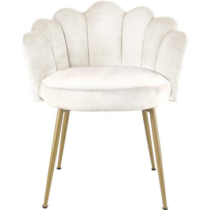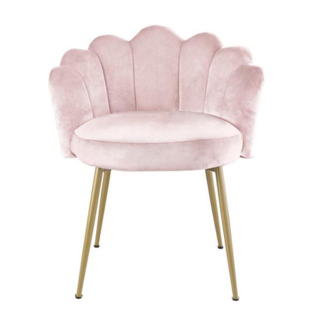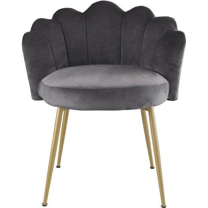 Modern chair with metal frame and fabric cushion.Modern chair with slatted wooden design