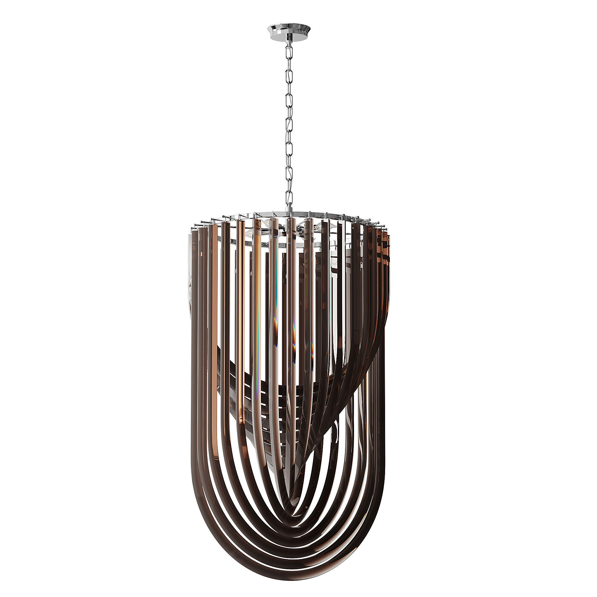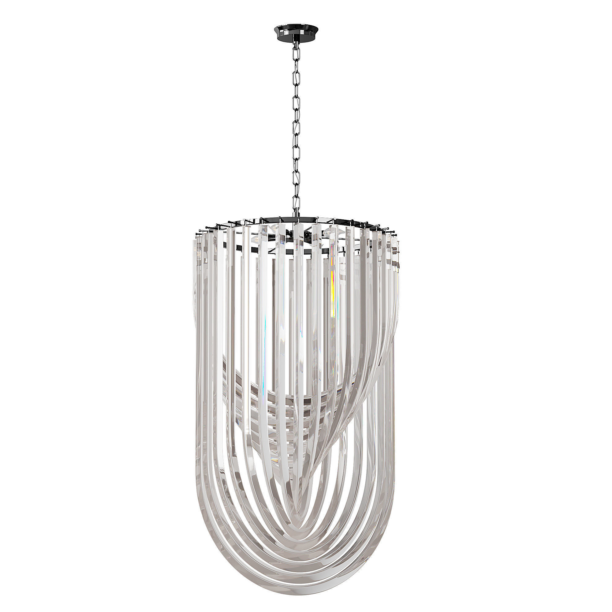 Art Deco glamour polisged chrome finished Vallance Chandelier. This high-class luxury chandelier with a twist features a series of sculptural acrylic drops which let reflected light sparkle from the internal light fittings. Perfect for adding vintage style to your home.