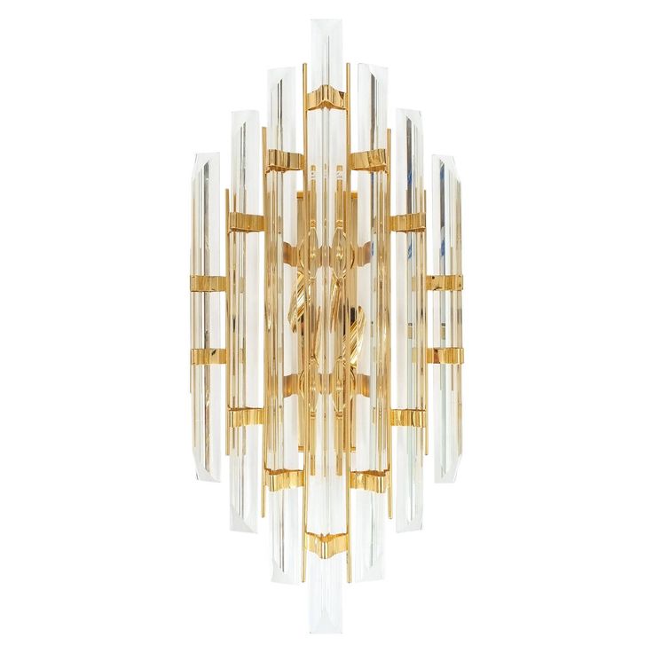 An unmistakable Art Deco design for this Modernist geometric crystal with brass wall lamp. Variations are available in custom size, color of brass finish and type of marble upon request.