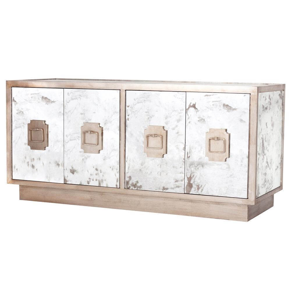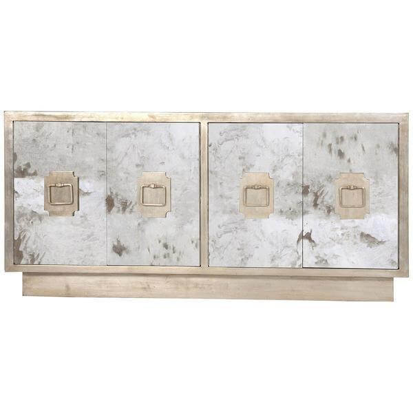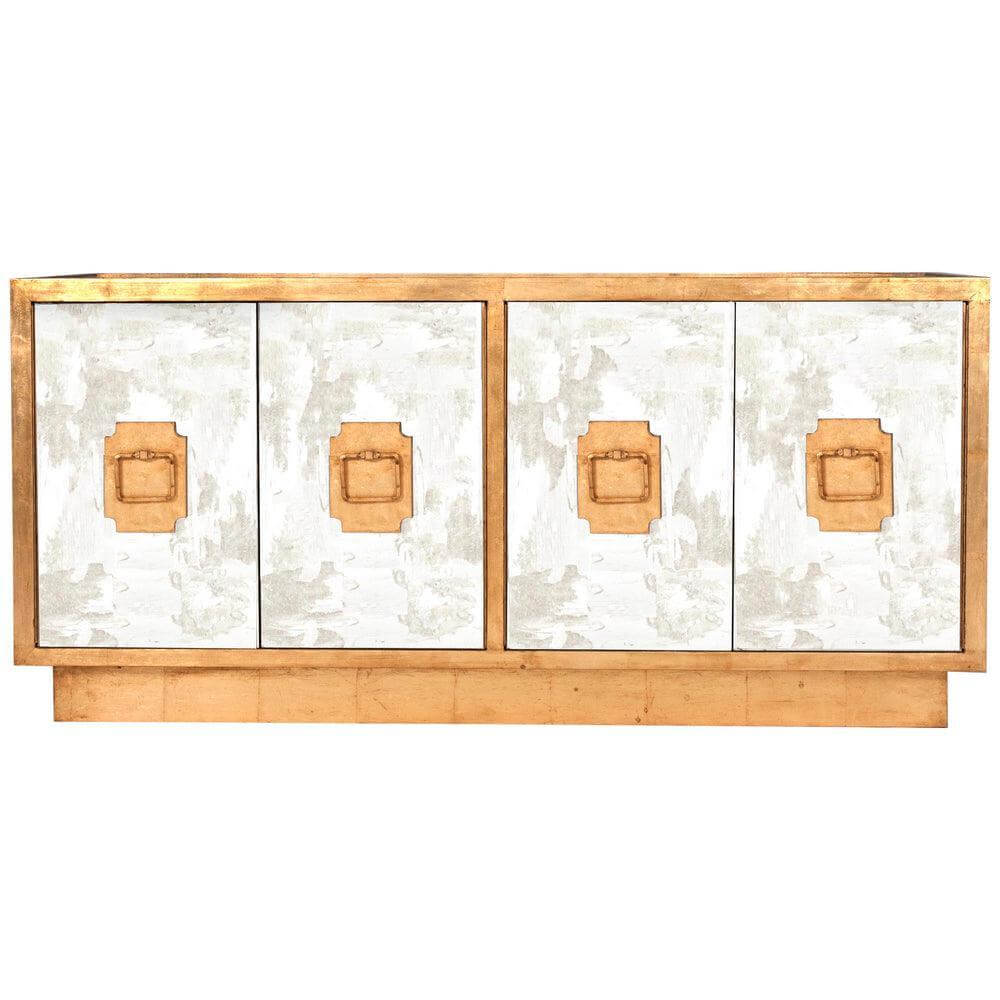 Ventian mirror four-door entertainment console or sideboard with gold or silver leaf detailing.